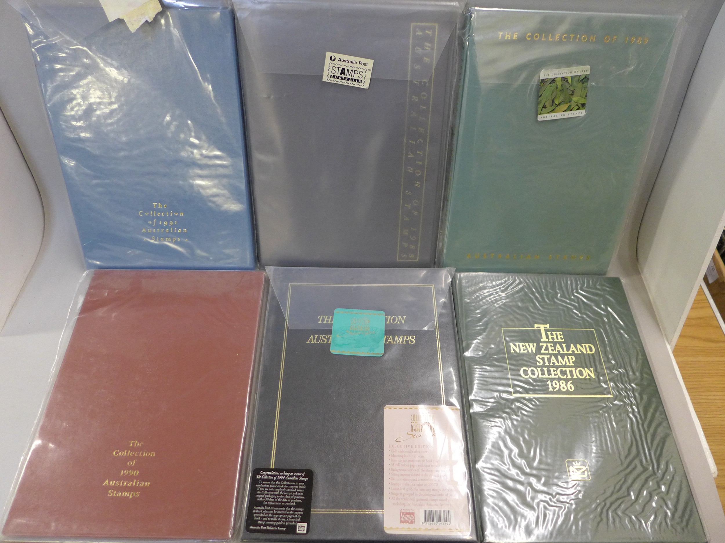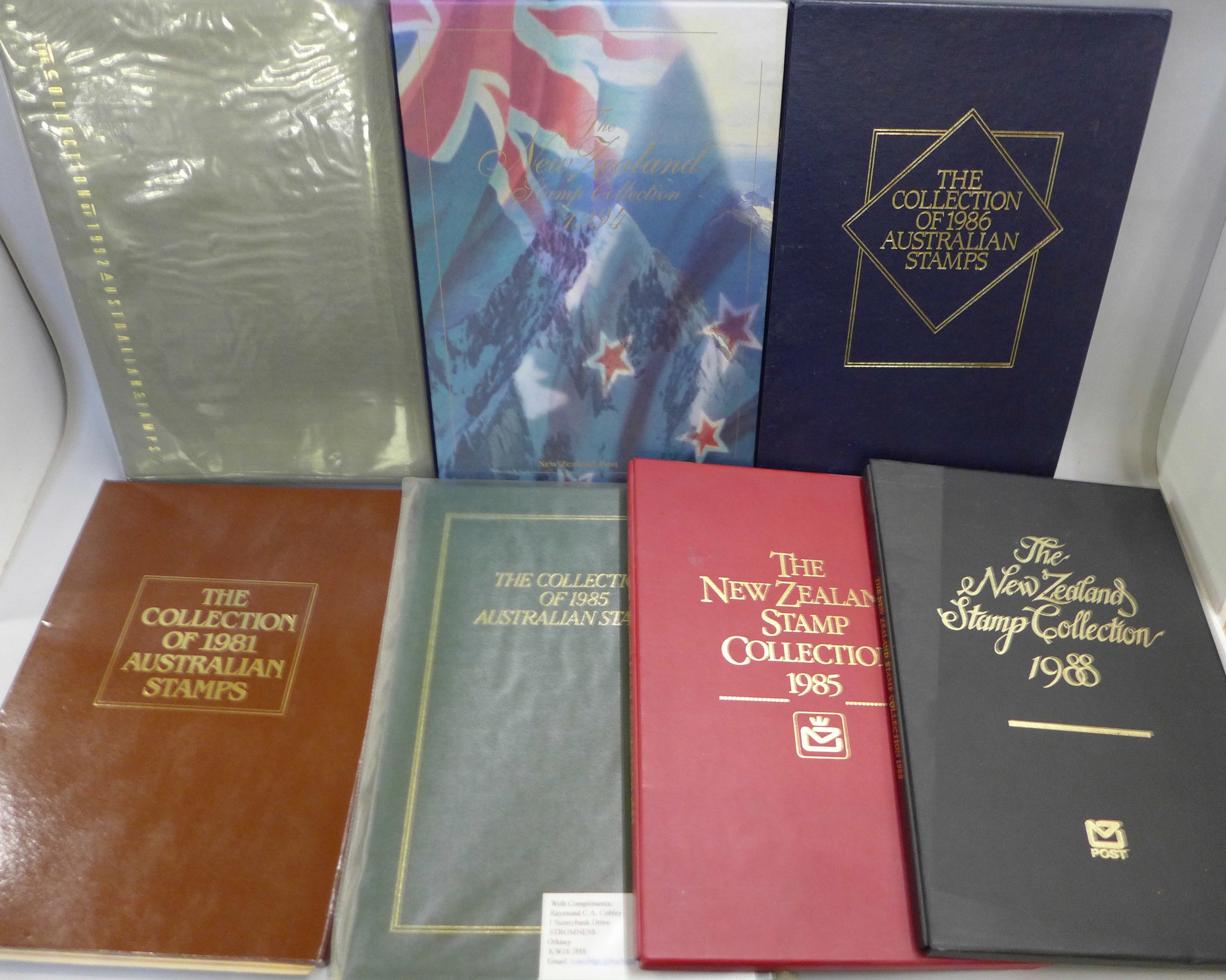 Australia and New Zealand year books; official Post Office year books from Australia for 1981, 1985, 1986 and 1988-1994 along with New Zealand for 1985, 1986, 1999 and 1994 all containing the unmounted mint stamps issued in those years, fourteen books in total