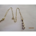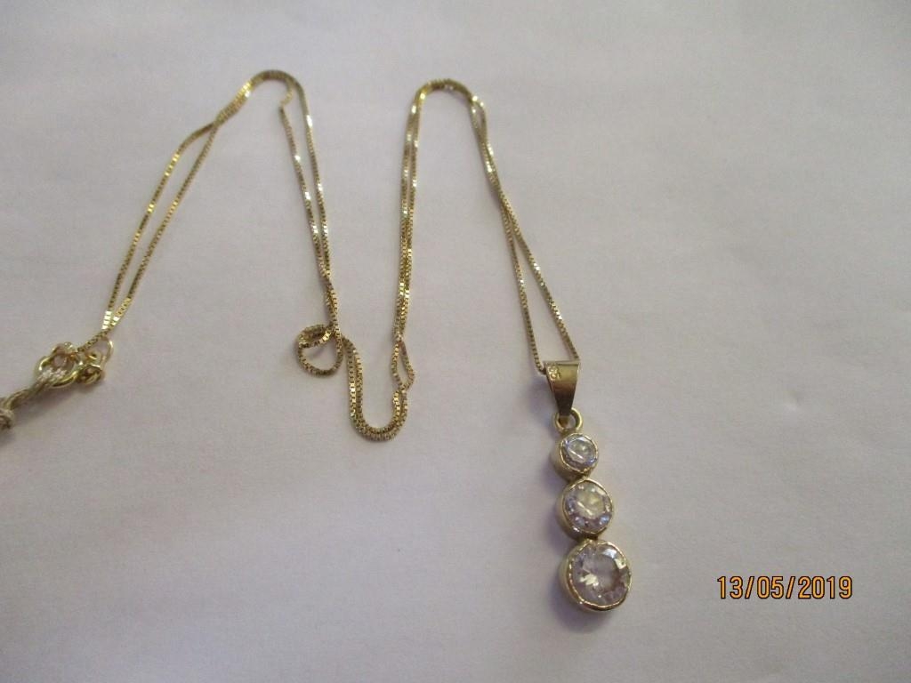 Solid 14ct Gold / 3Stone Pendant Necklace with White Stones 2.7gr