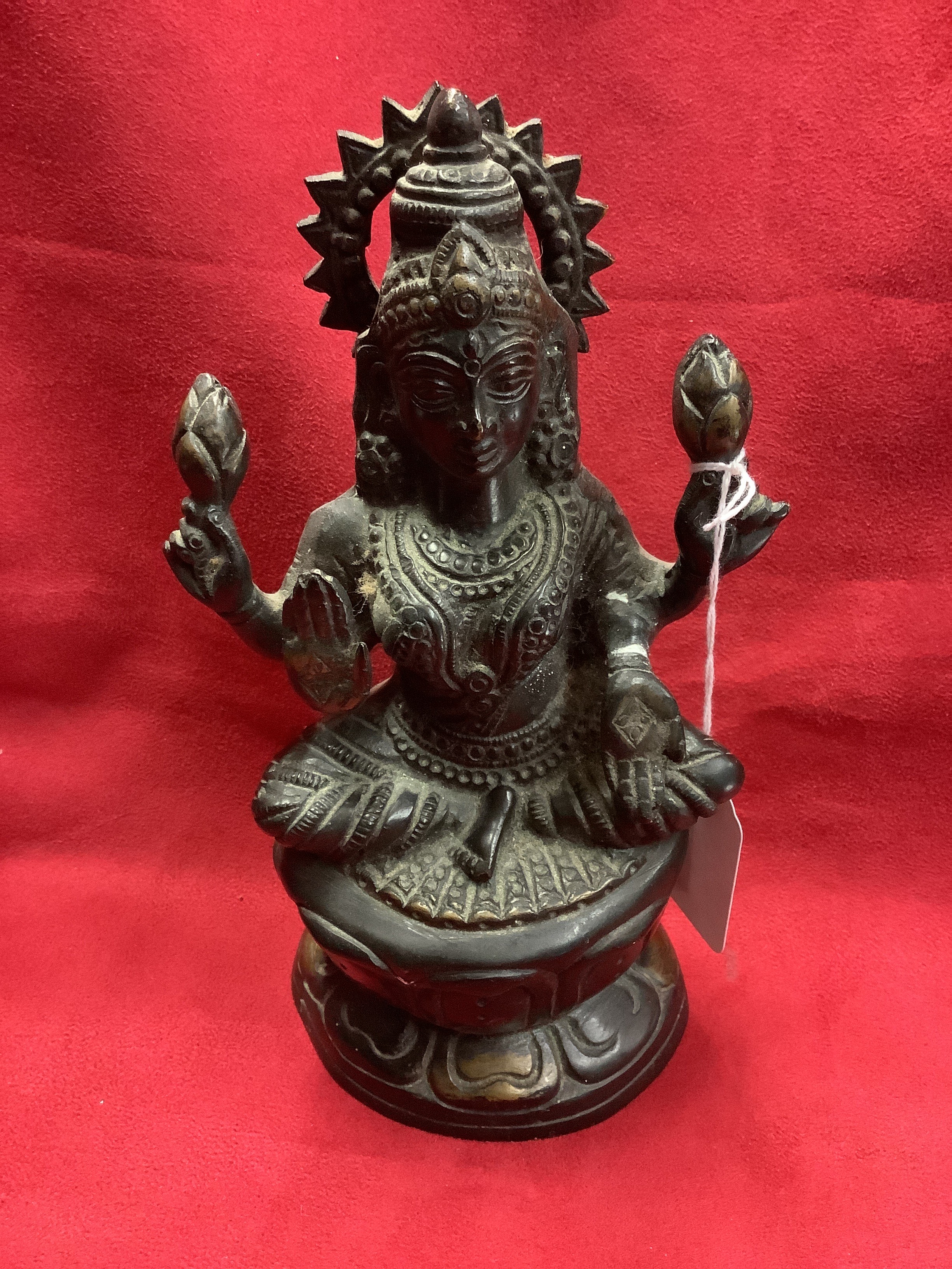 A bronze statue of the Hindu goddess Lakshmi 8” high