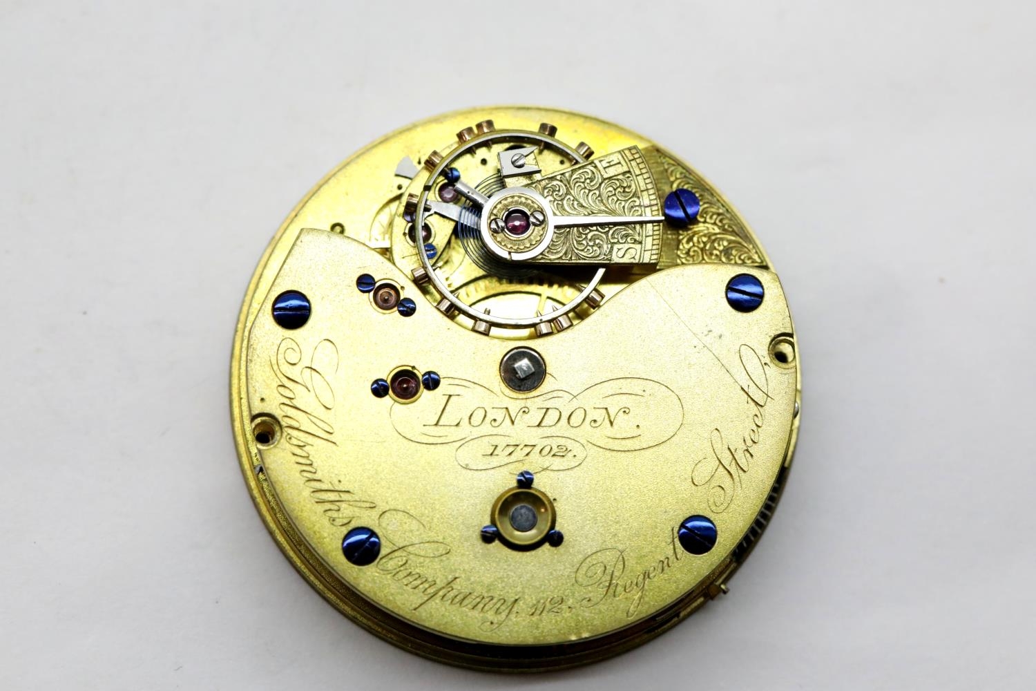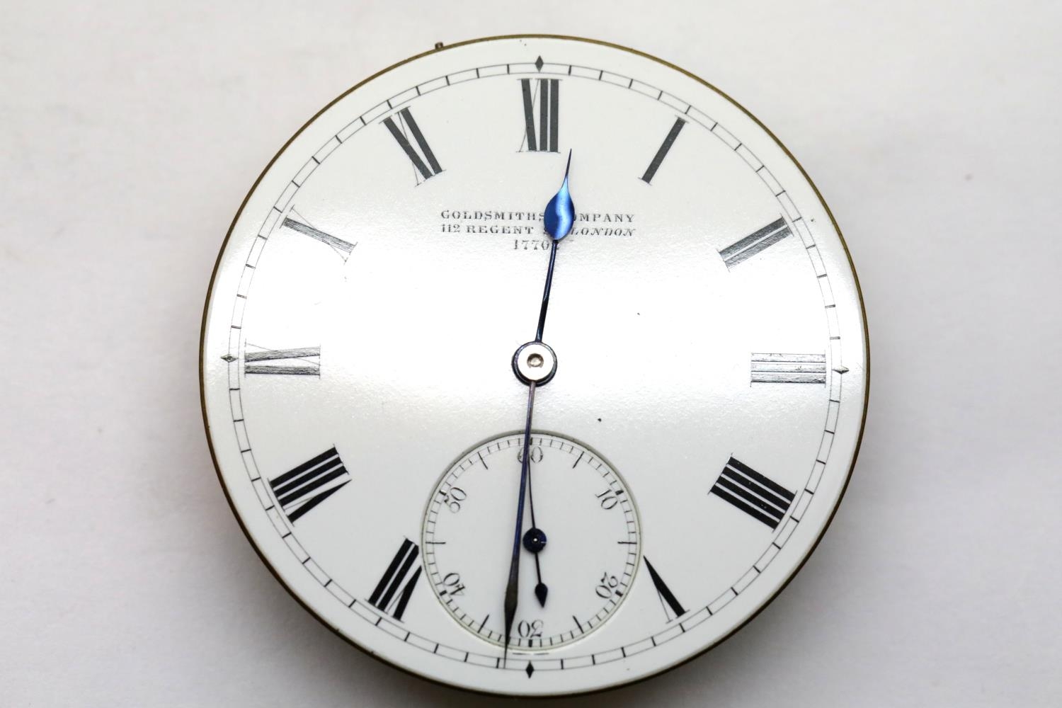 Goldsmiths Company pocket watch movement. P&P Group 1 (£14+VAT for the first lot and £1+VAT for subsequent lots)