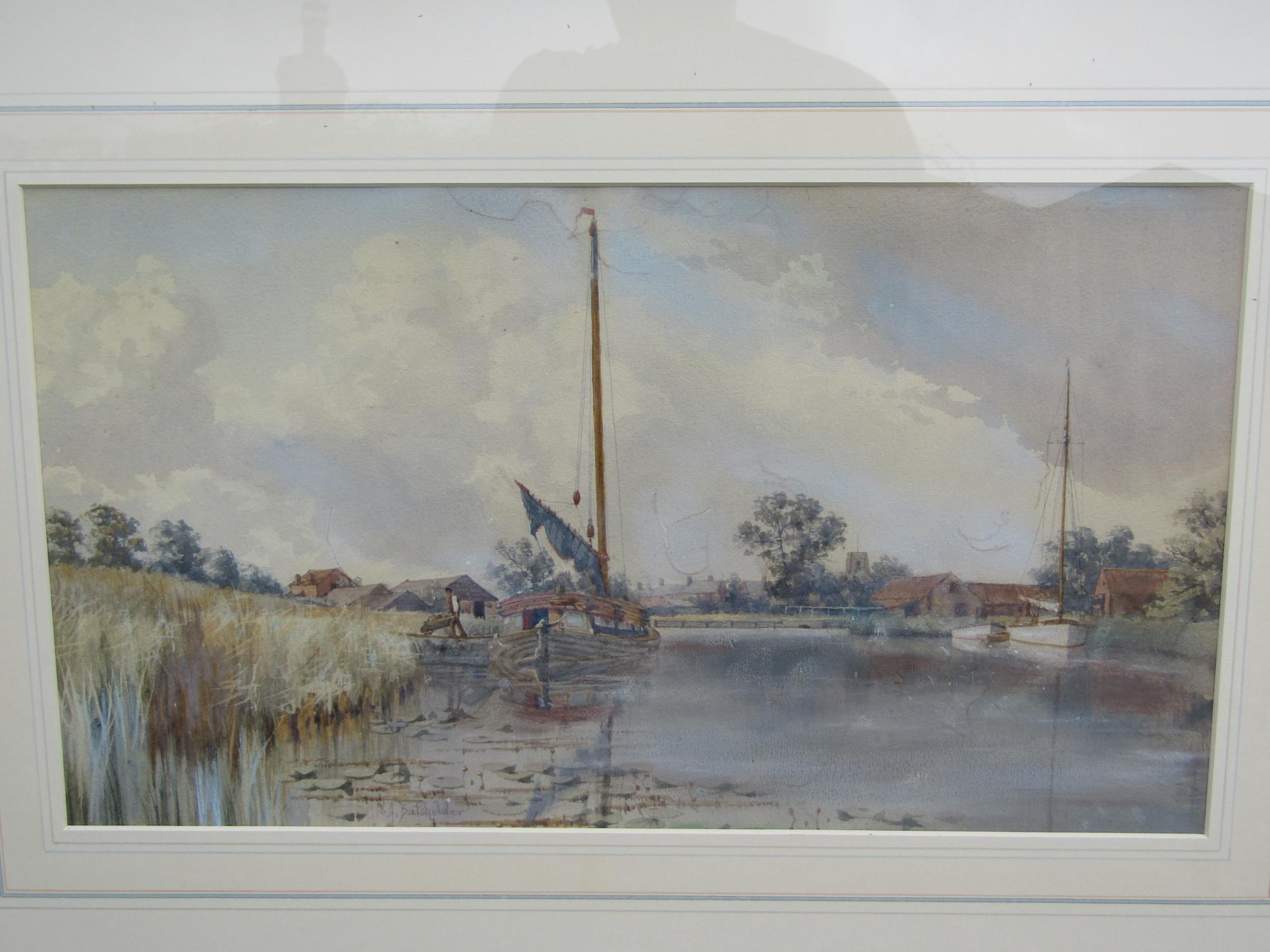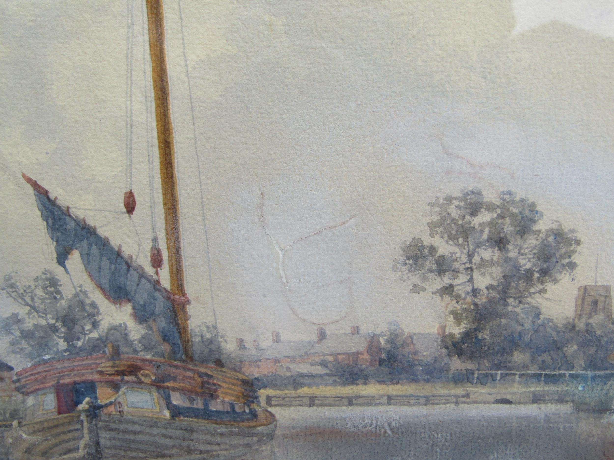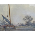 STEPHEN JOHN BATCHELDER (1849-1932) "Wherry near Stalham Staithe", watercolour, damage present to paper, 27cm x 50cm