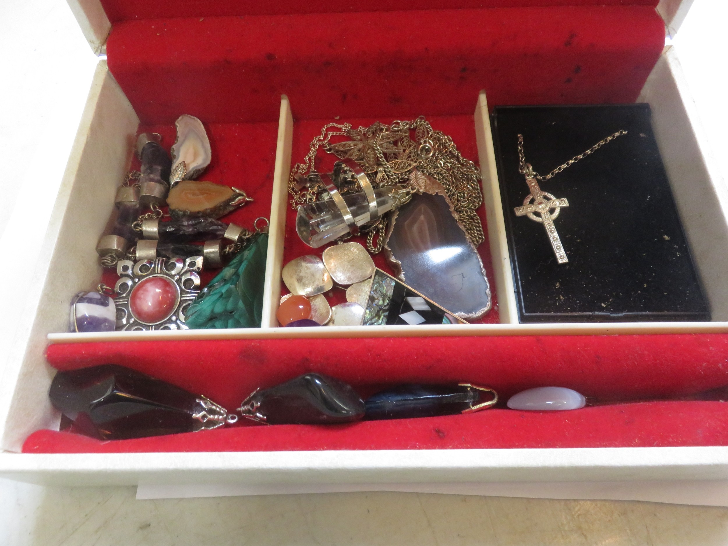 Jewellery case with Agate Pendants, Silver Jewellery, etc