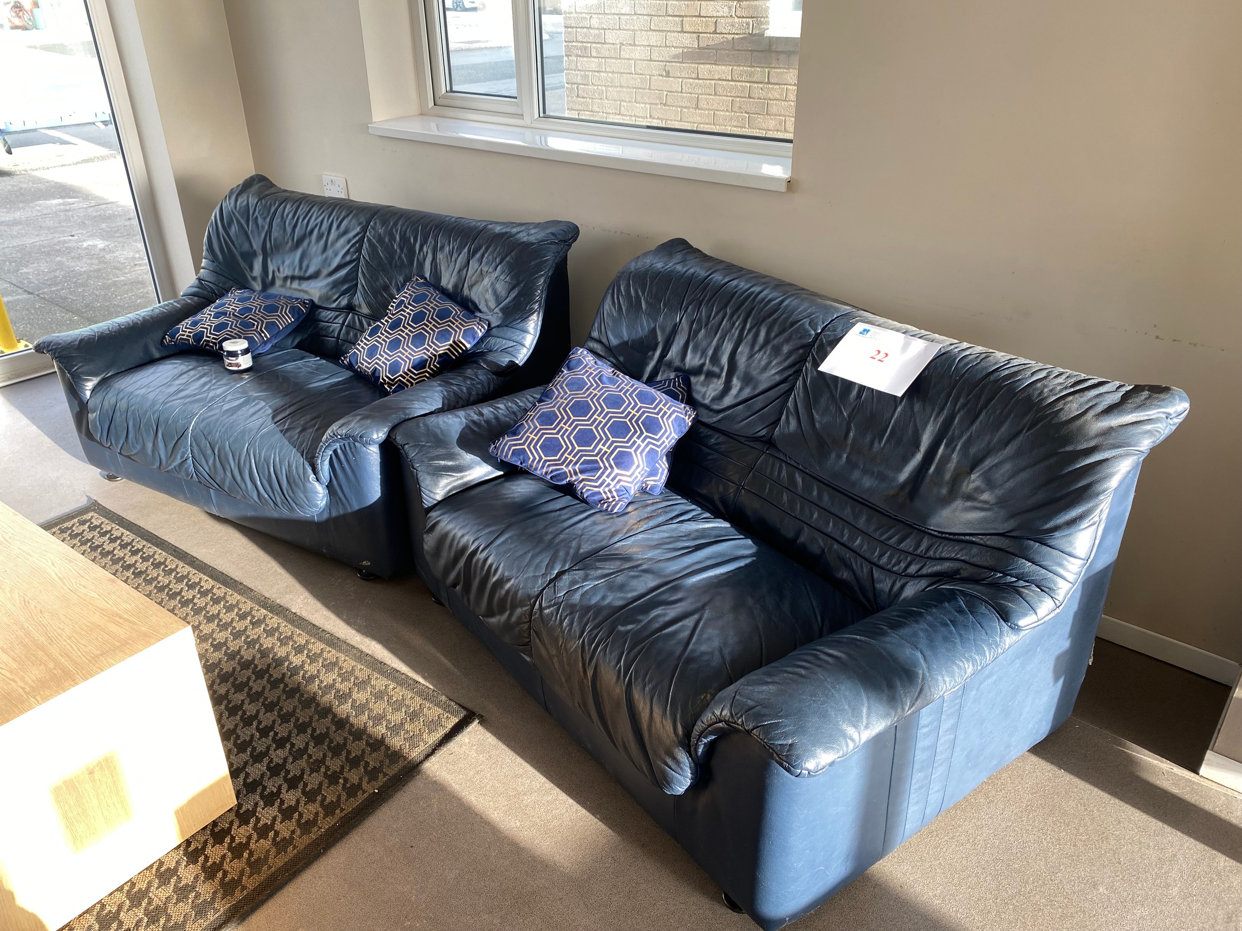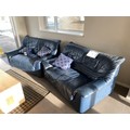 Two blue leather two seater settees