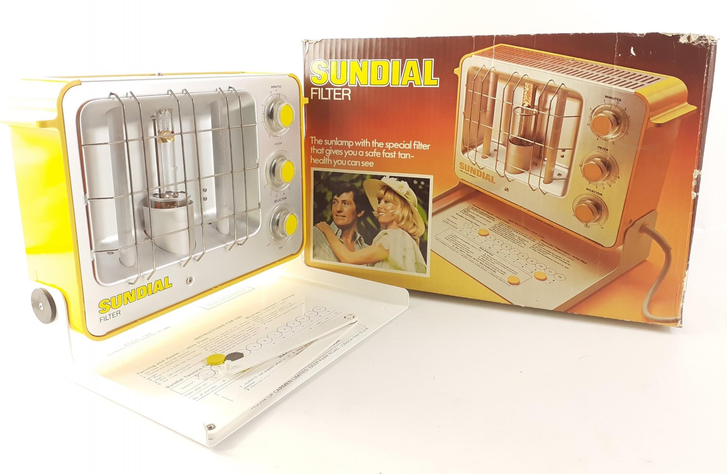 A vintage 70s SUNDIAL sun lamp model 120/F mk II made by the Carmen Curler Co