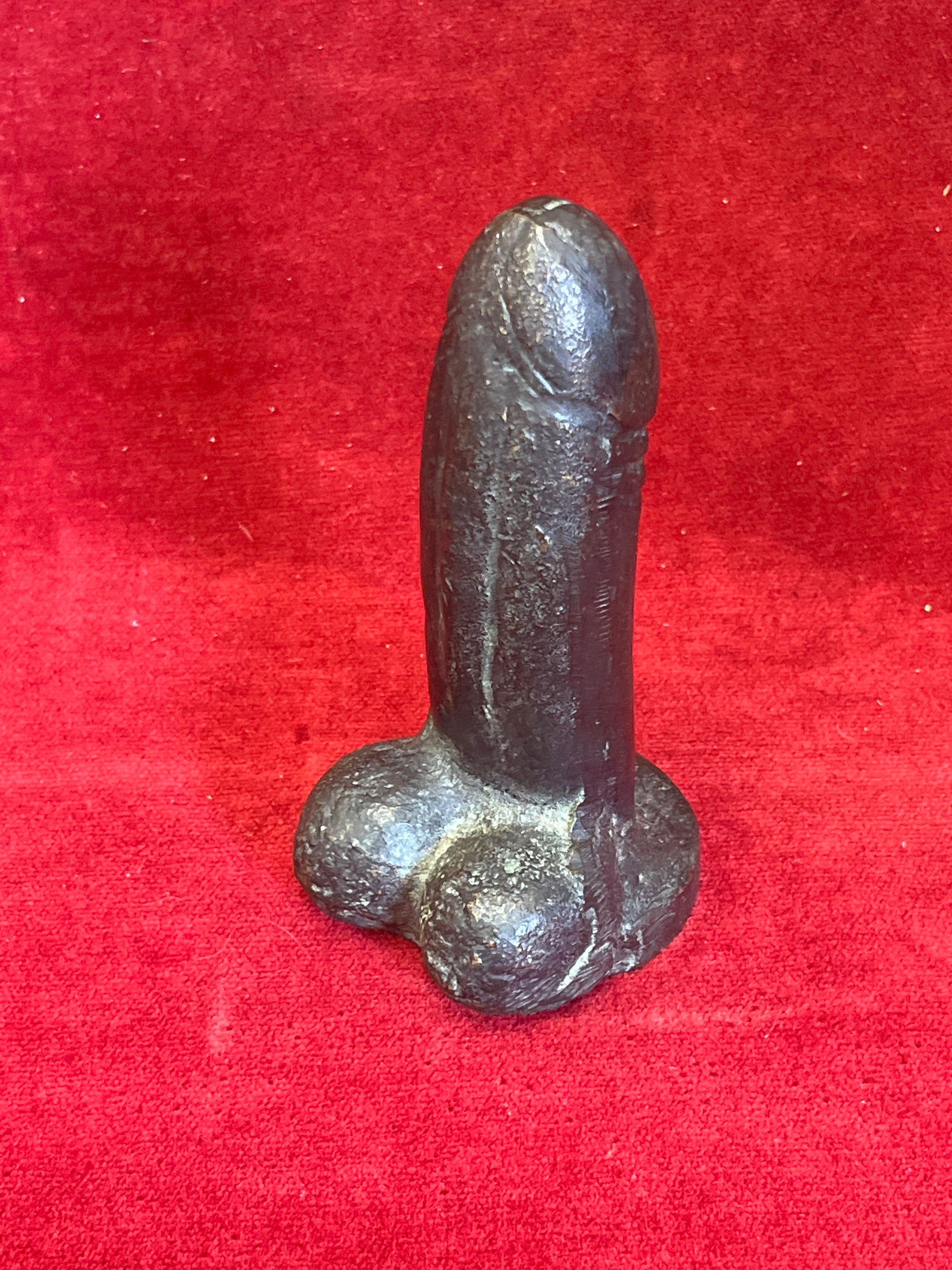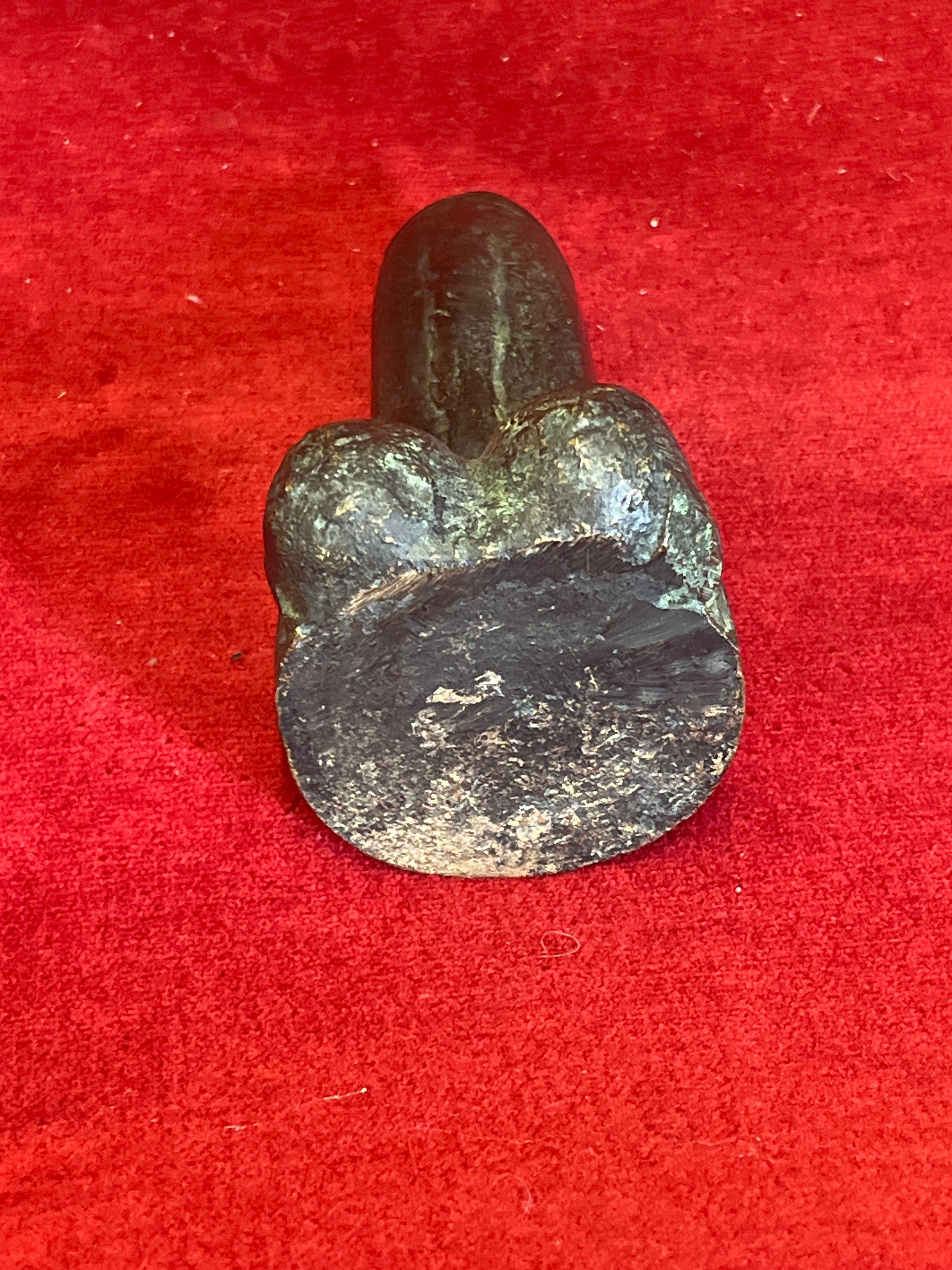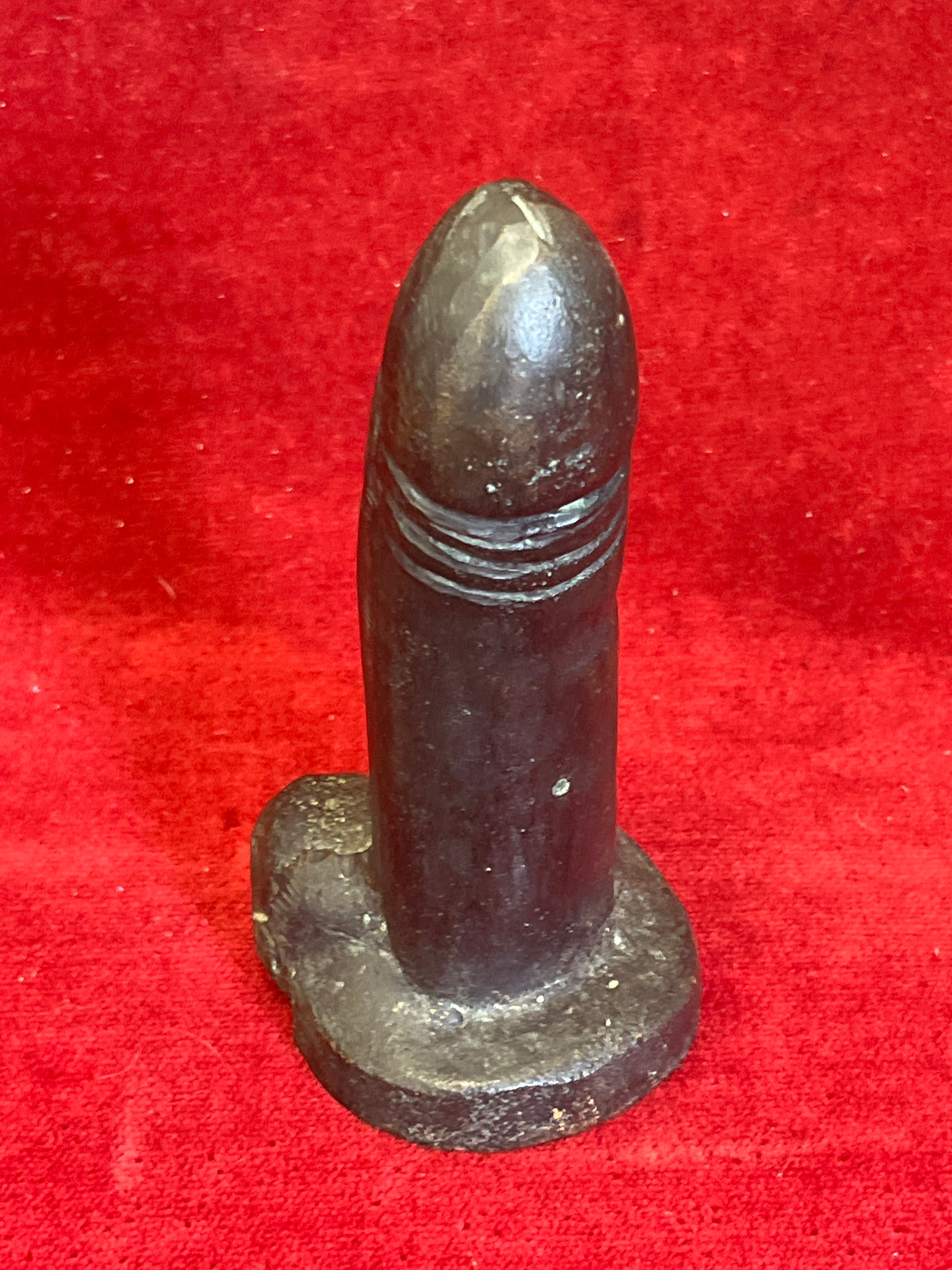 A SOLID BRONZE TOTEM PHALLIC SYMBOL - POSSIBLY JAPANESE EROTICA.