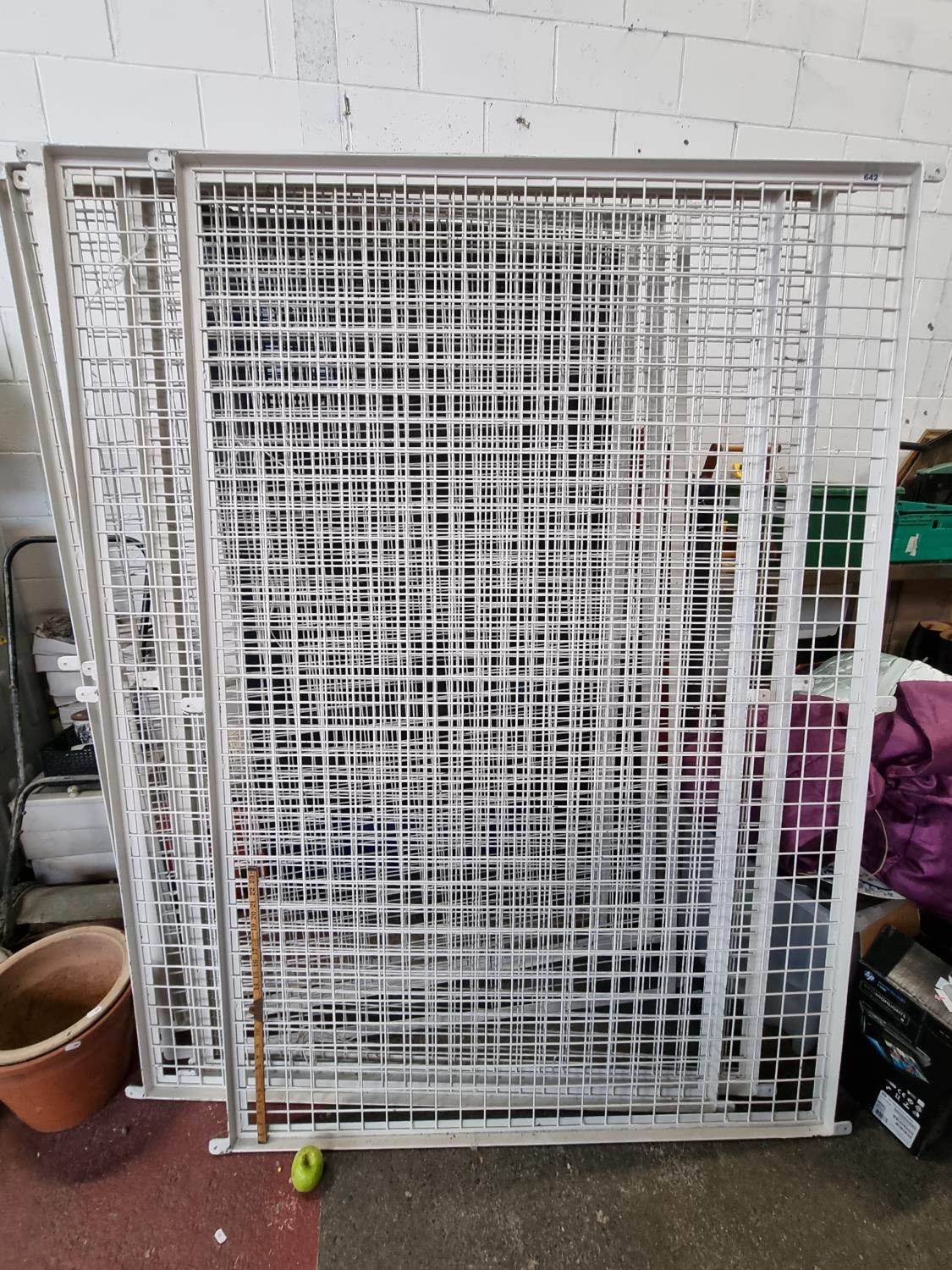 A Set of 7 Heavy Metal Frames That Can Be Used For Displaying items from peg hooks or art or can be used for Security Purposes. 186cm x 125cm. They were originally used in an auction house to hang pictures.