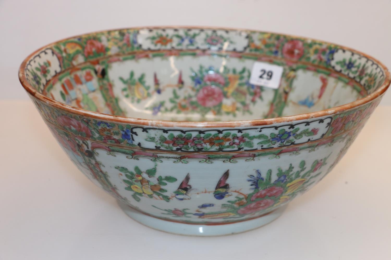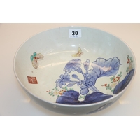 Chip to rim, approx. 1cm x 2cm. Several losses to paintwork. Dirty throughout.