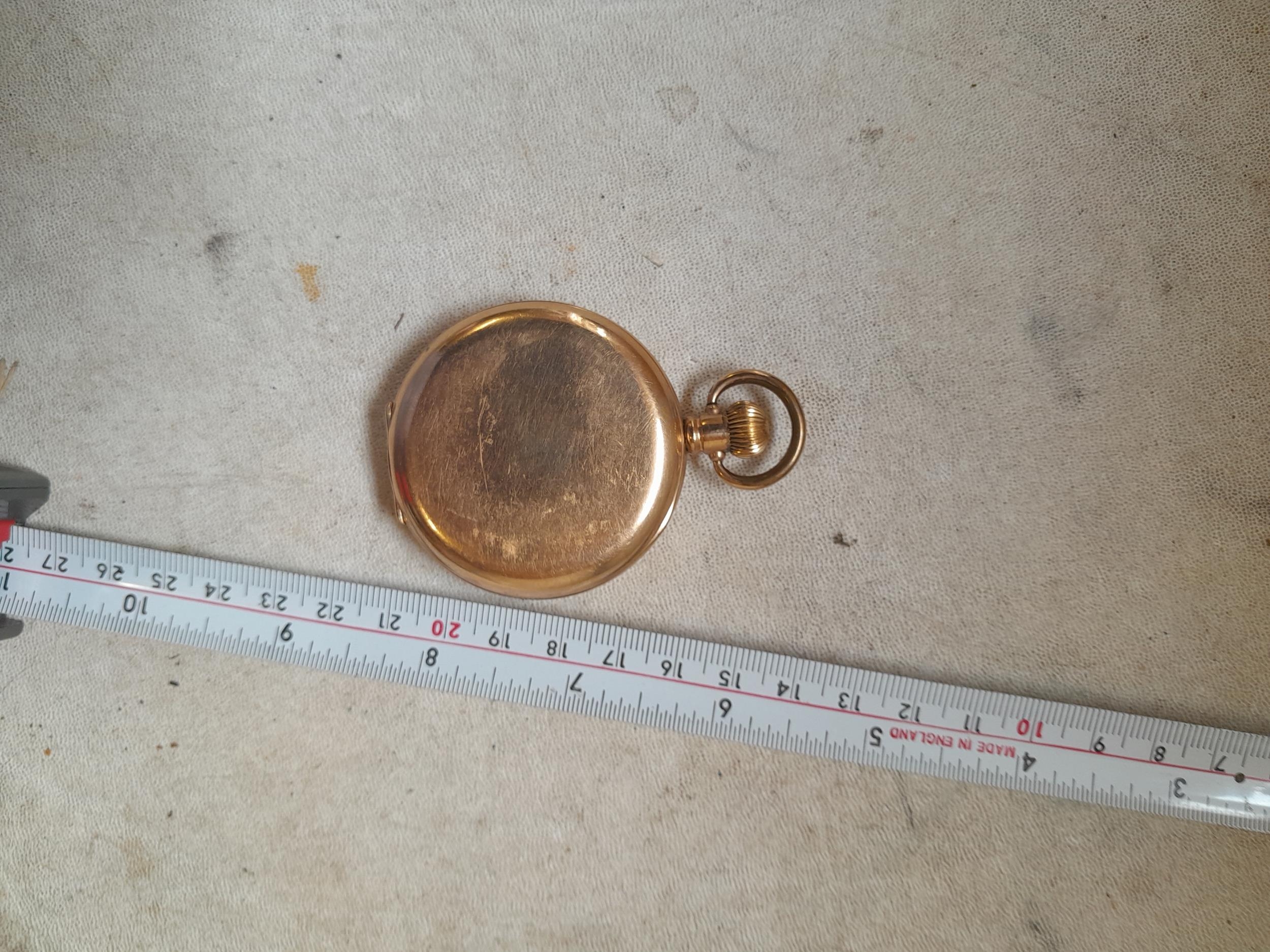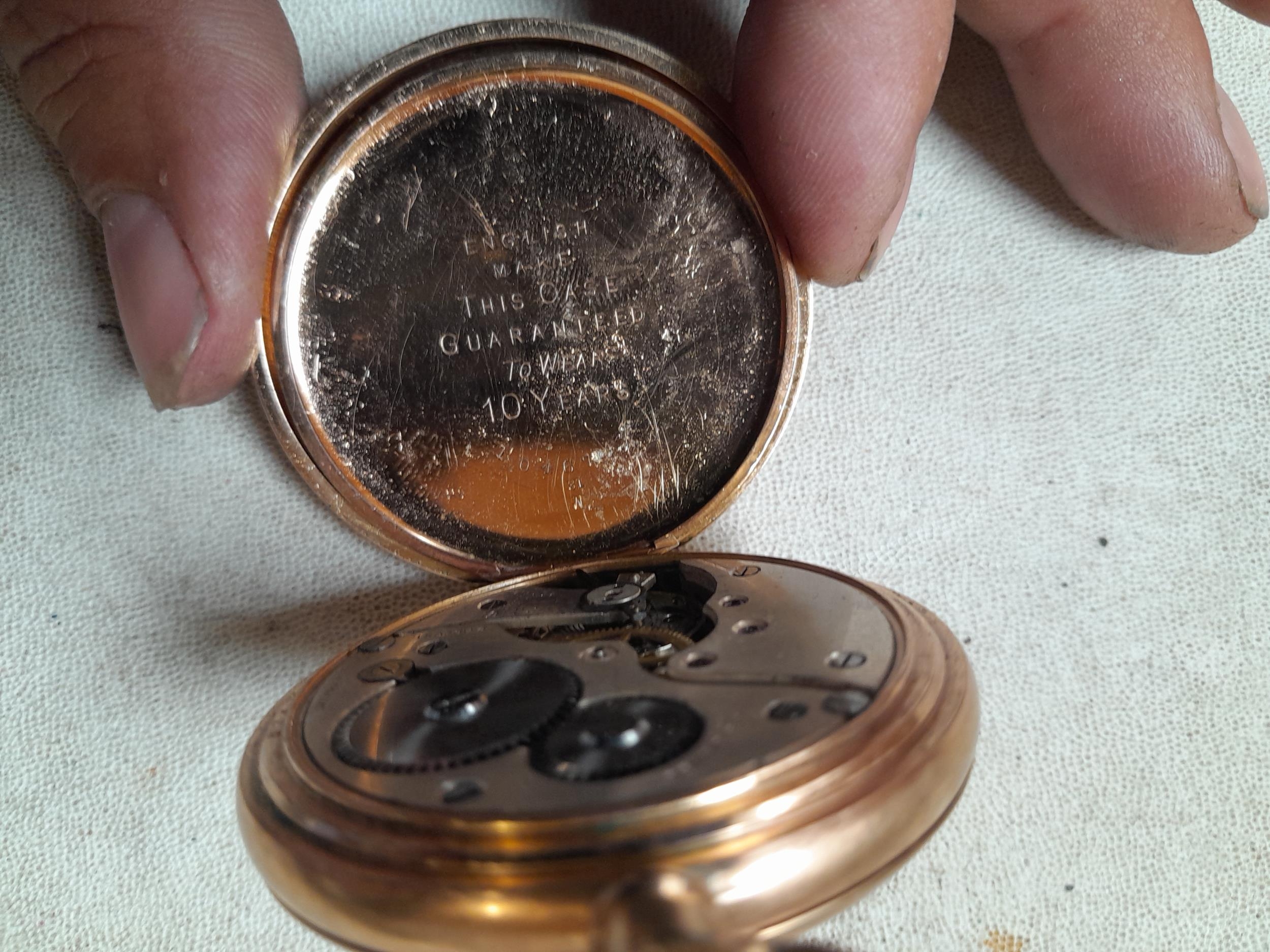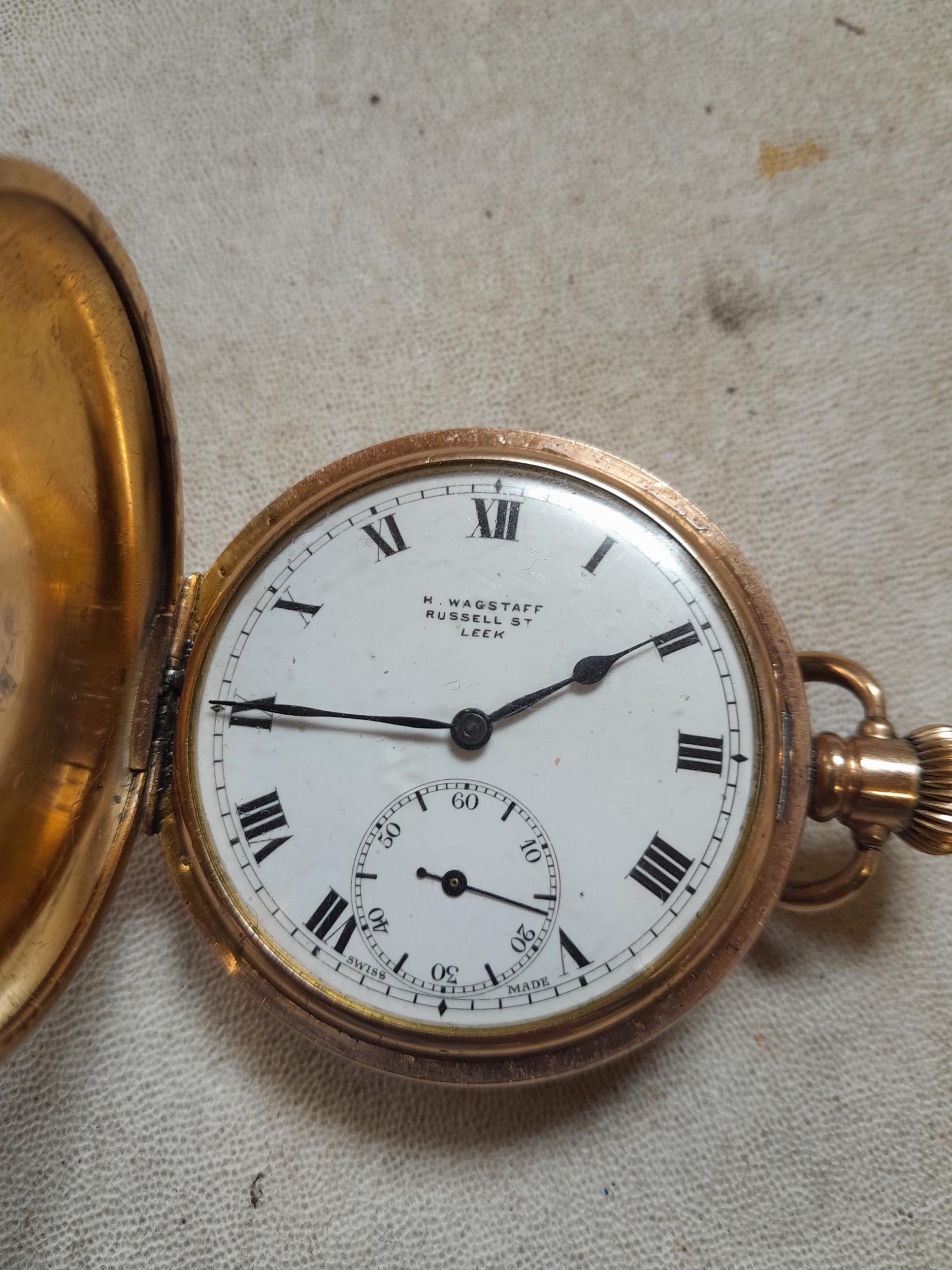 Early 20th century gold plated full hunter pocket watch for spares repair by Wagstaff in Dennison case