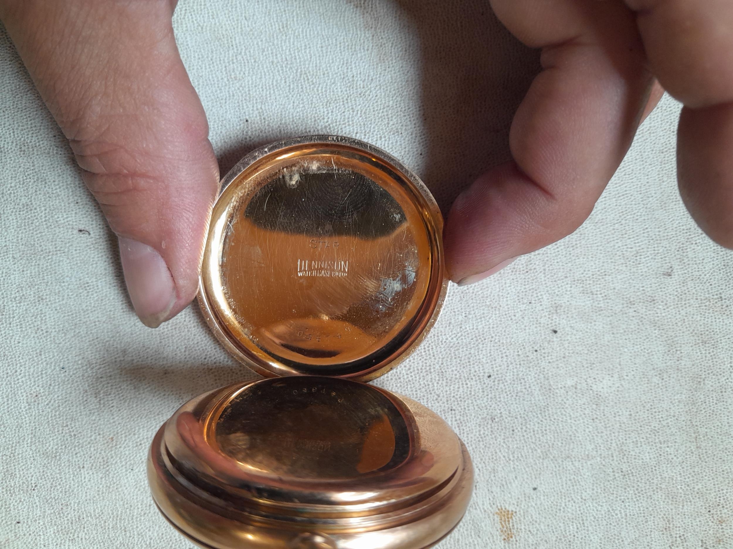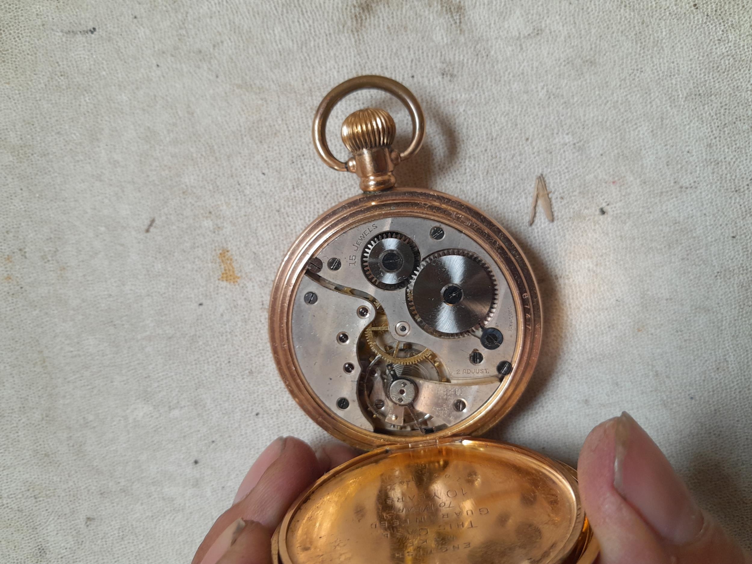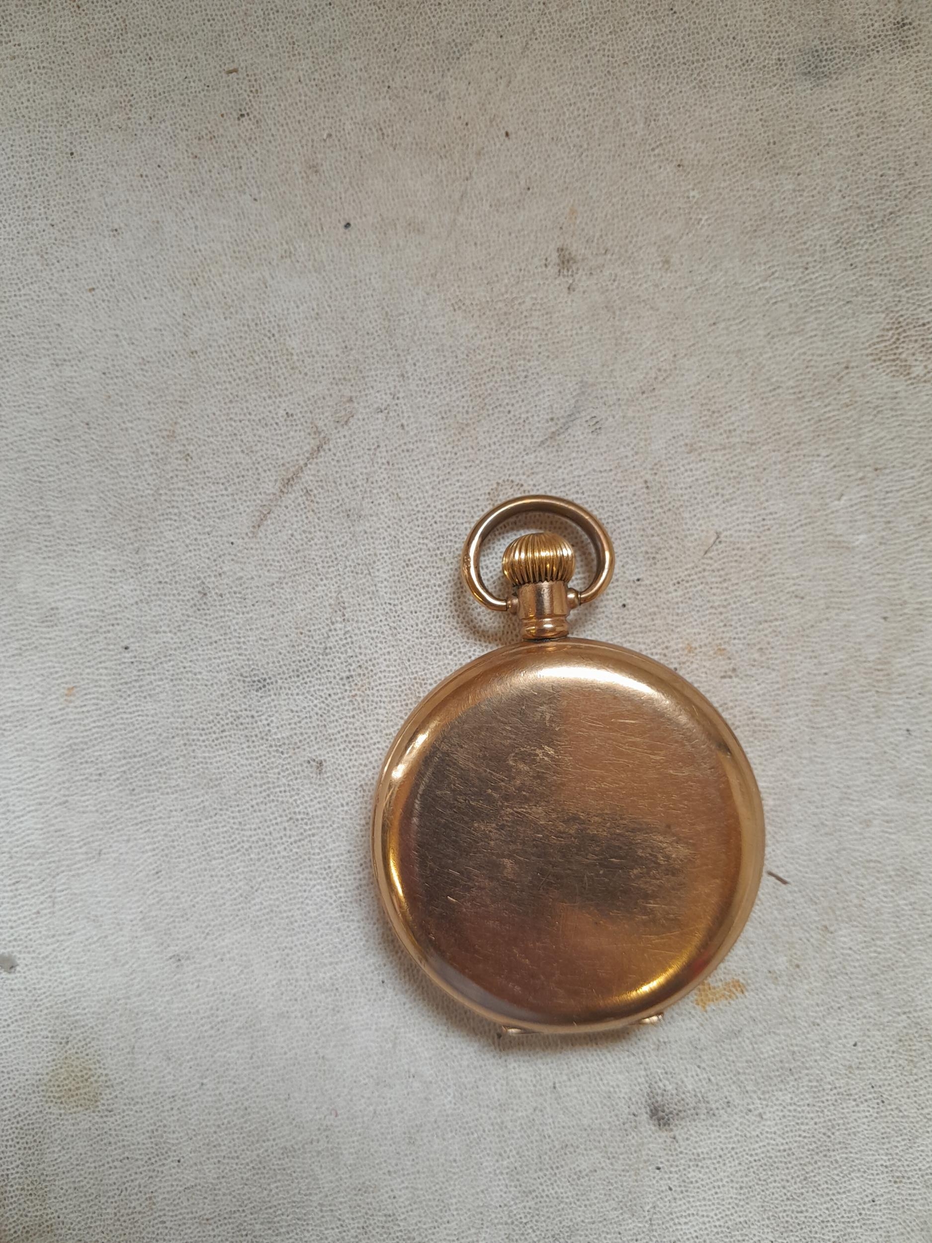 Early 20th century gold plated full hunter pocket watch for spares repair by Wagstaff in Dennison case