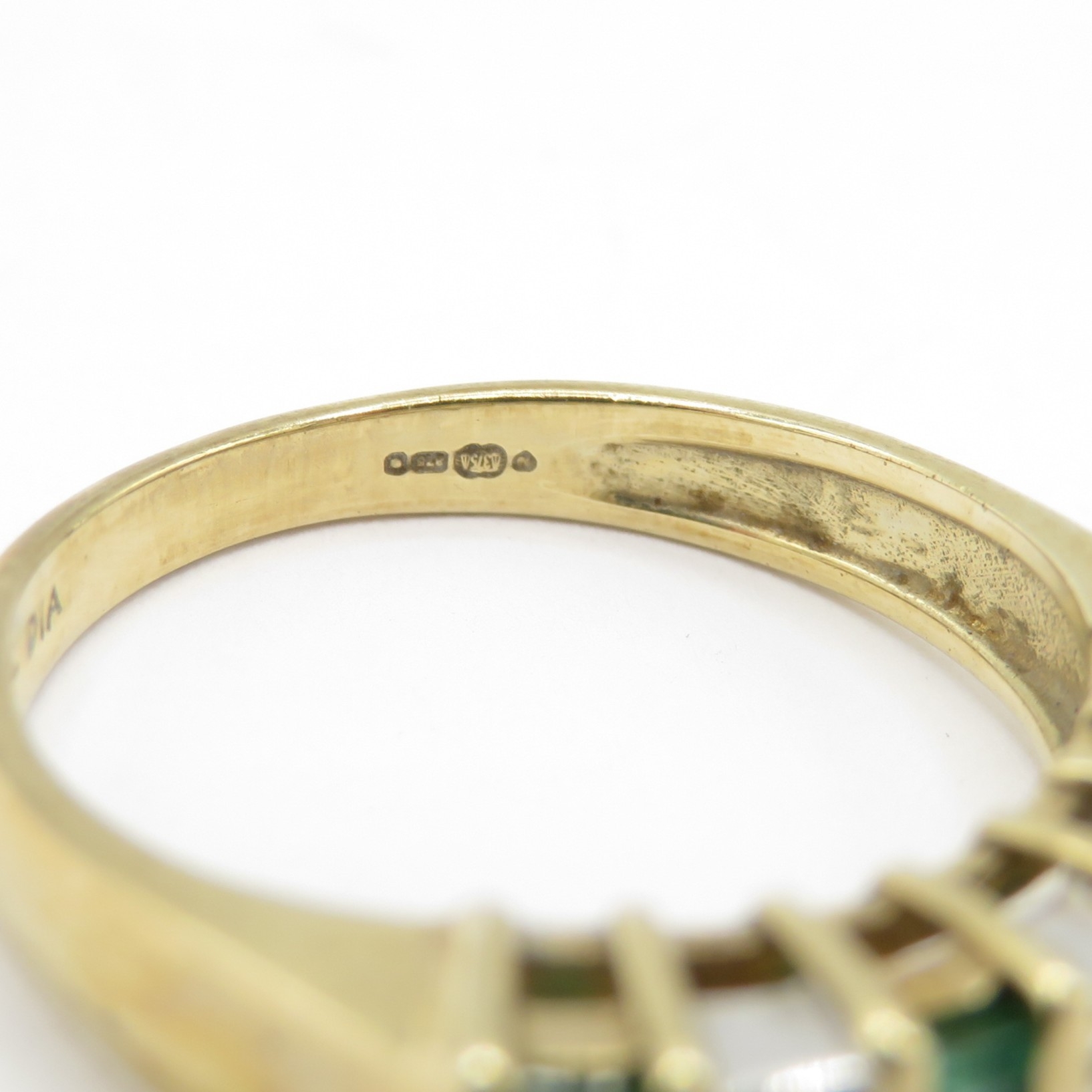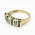 9ct gold princess cut diamond and emerald channel set ring (3g) size J 1/2