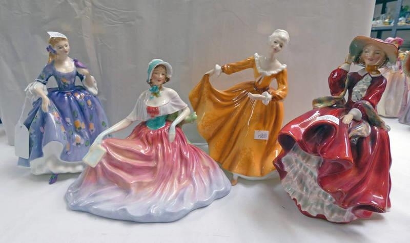 FOUR ROYAL DOULTON PORCELAIN FIGURES INCLUDING HN1834 - TOP O'THE HILL, HN 2381 KIRSTY, HN2030 - MEMORIES & HN 2839 - NICOLA