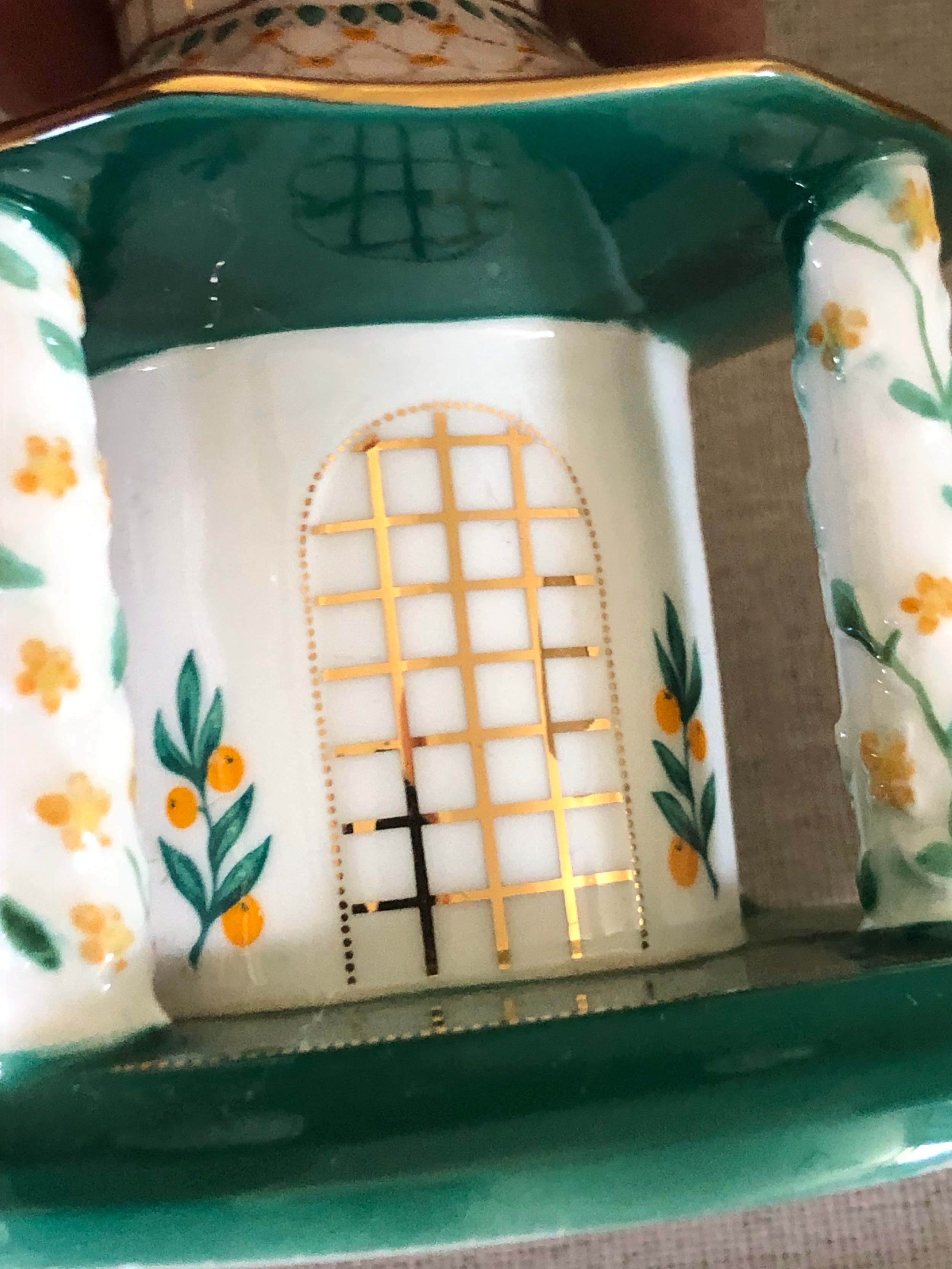 Coalport Orange Blossom Cottage modelled by Jenny Oliver. Boxed