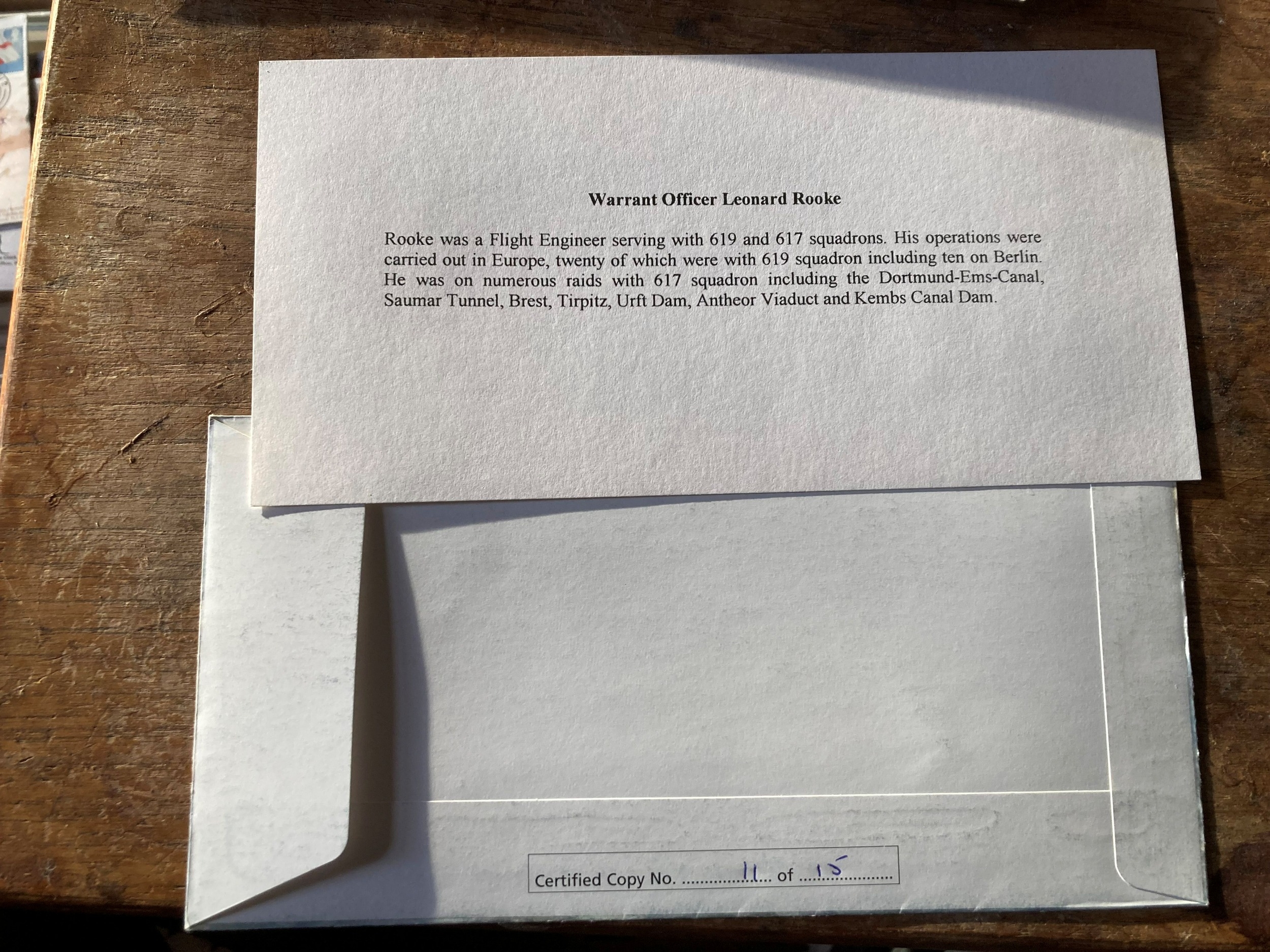 RAF 617 sqn The Kembs Dam Lancaster cover signed WO Leonard Rooke 619 Squadron & 617 Squadron. Ops included Dortmund Ems Canal, Sauman Tunnel, Brest, Tirpitz, Urft Dam, Antheor Viaduct & Kembs Canal. Rare only 15 were signed. Single Vendor collection. Good condition. We combine postage on multiple winning lots and can ship worldwide. UK postage from £5.99, EU from £7.99, Rest of World from £9.99.