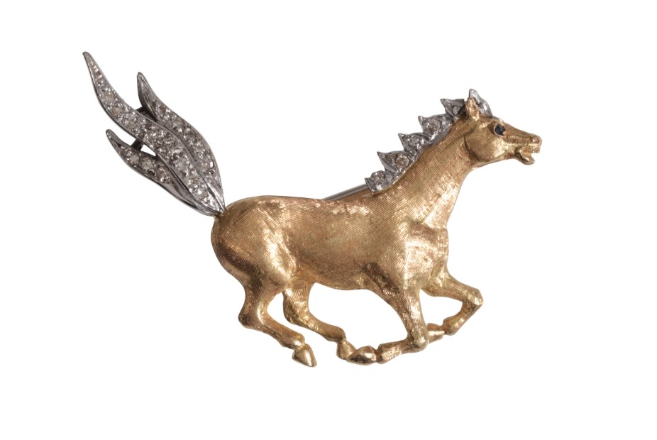A VINTAGE DIAMOND HORSE BROOCH