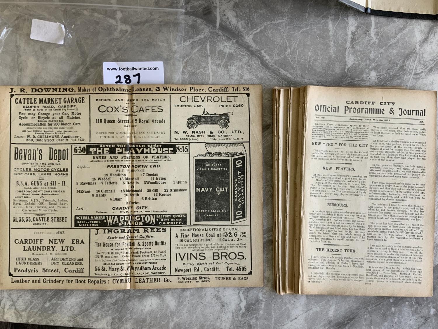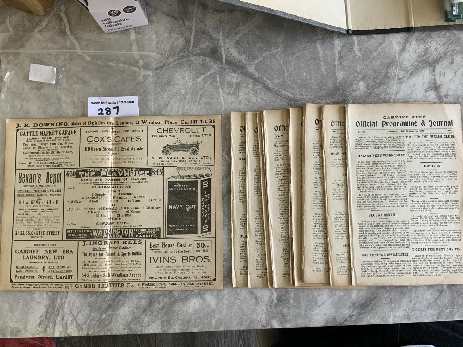 1921/1922 Cardiff City Home Football Programmes: 15 first team to include Sunderland Burnley Bolton Newcastle Everton Bradford City and Blackburn. All ex bound volume with no covers. (15)
