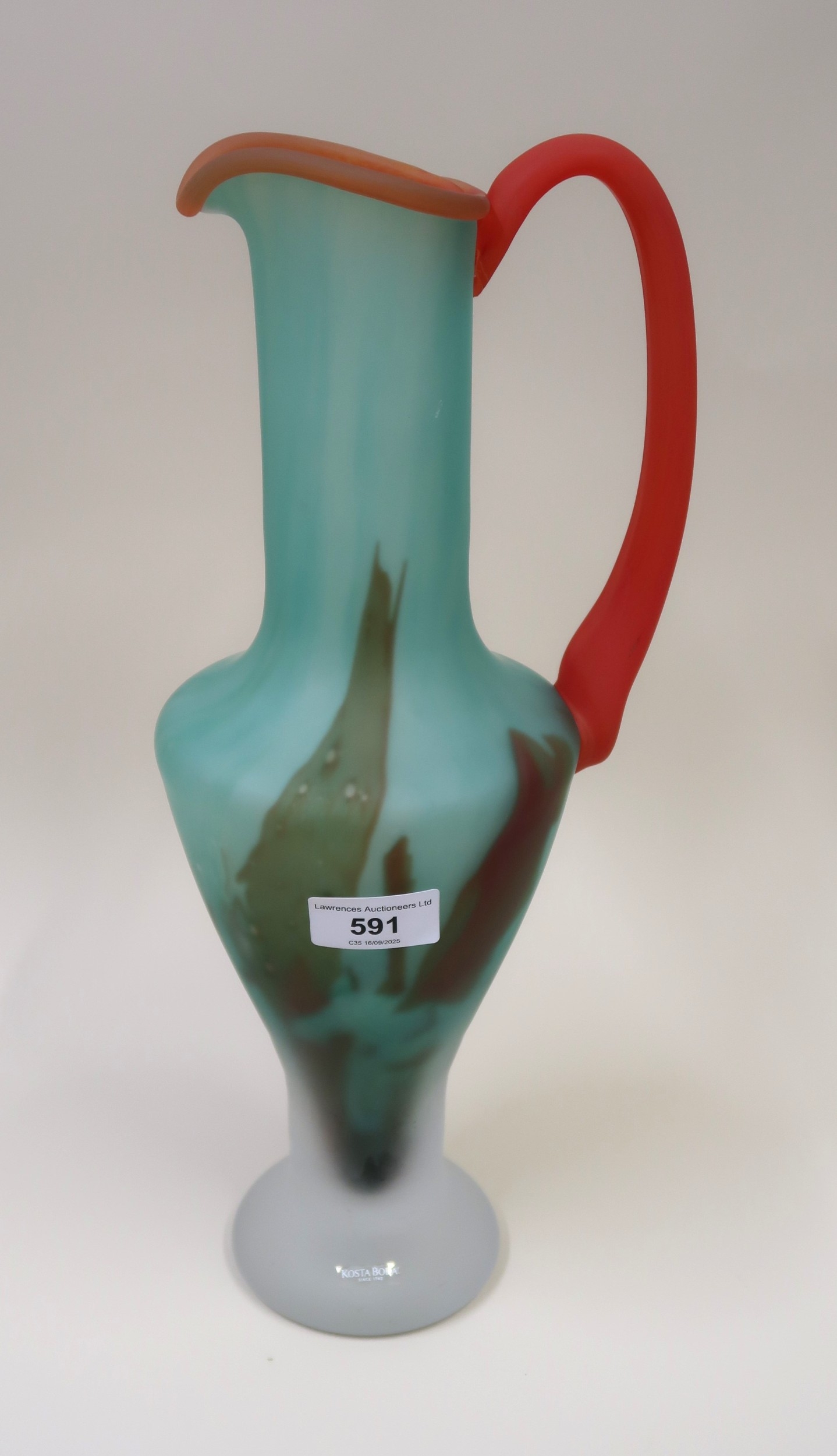 Kosta Boda, heavy coloured glass pitcher signed Monica Backstrom, 38cm high