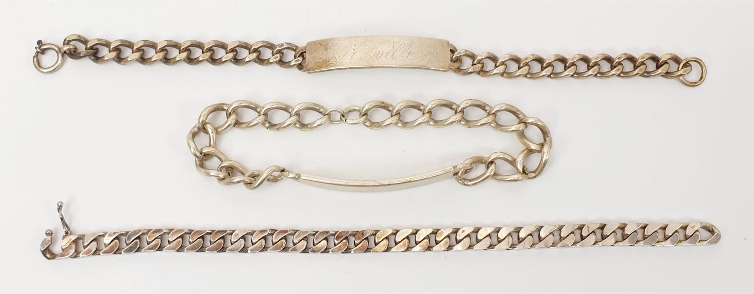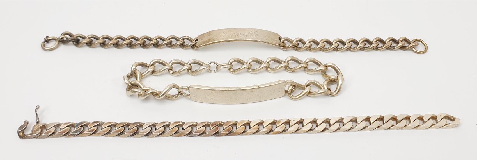 Two hallmarked silver christening bracelets and a hallmarked silver bracelet, length 21cm, weight 94g. UK shipping £14.