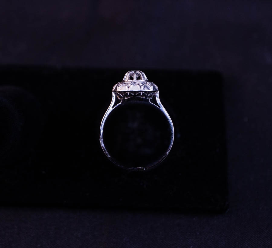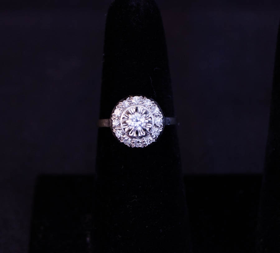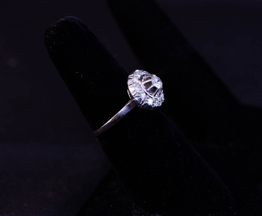 ANTIQUE DIAMOND CLUSTER RING SET IN PLATINUM - APPROX 1CT DIAMOND, SIZE N