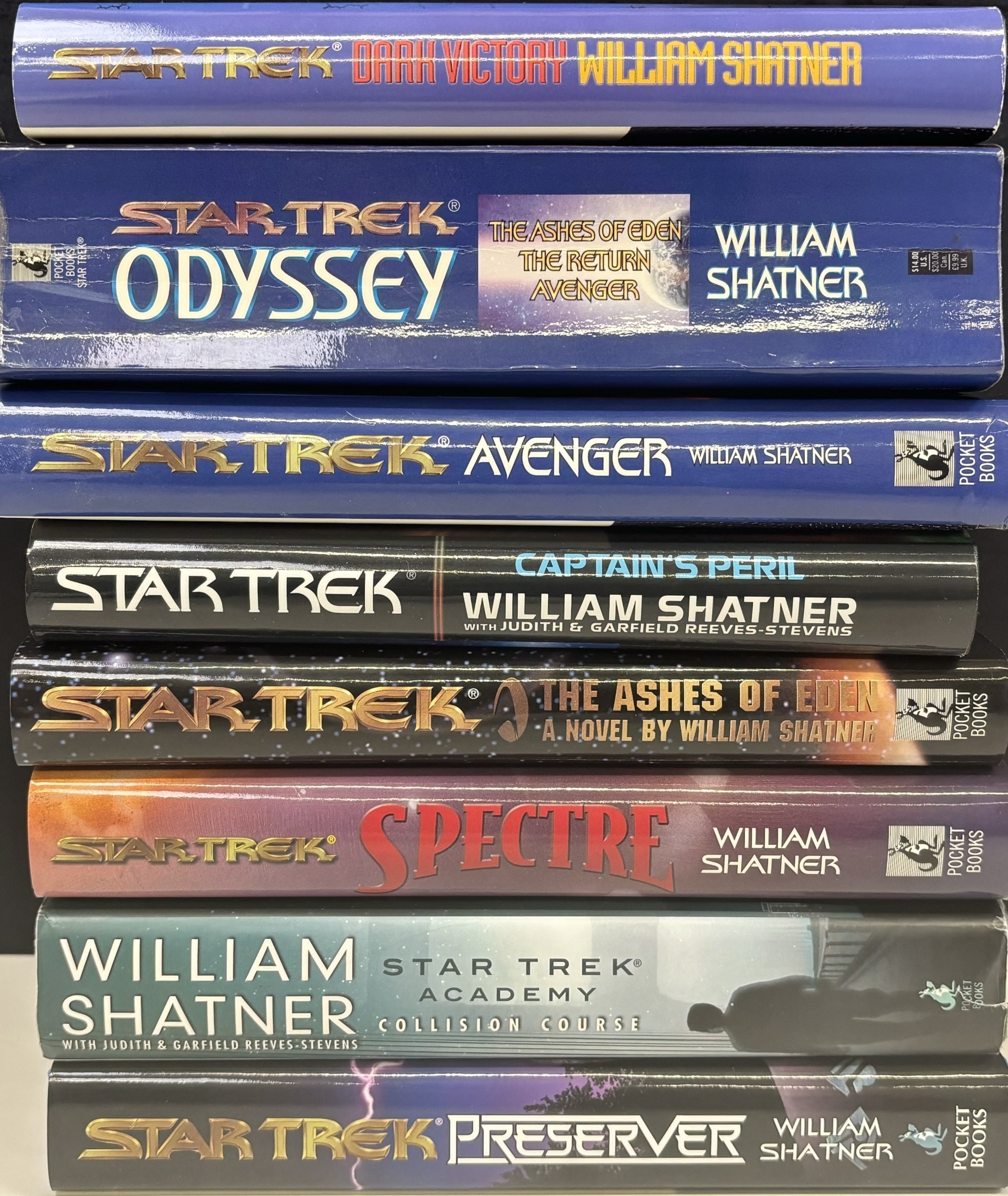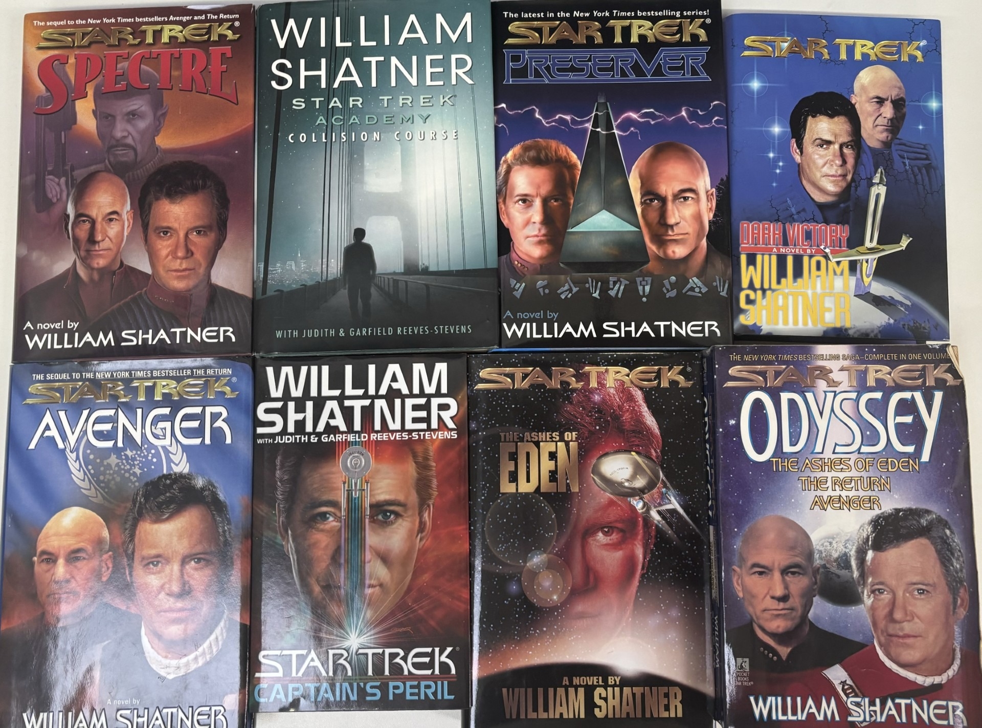 Collection of 8 Star Trek novels (mostly hardback), by William Shatner. Published by Pocket Books, 1995-2007.