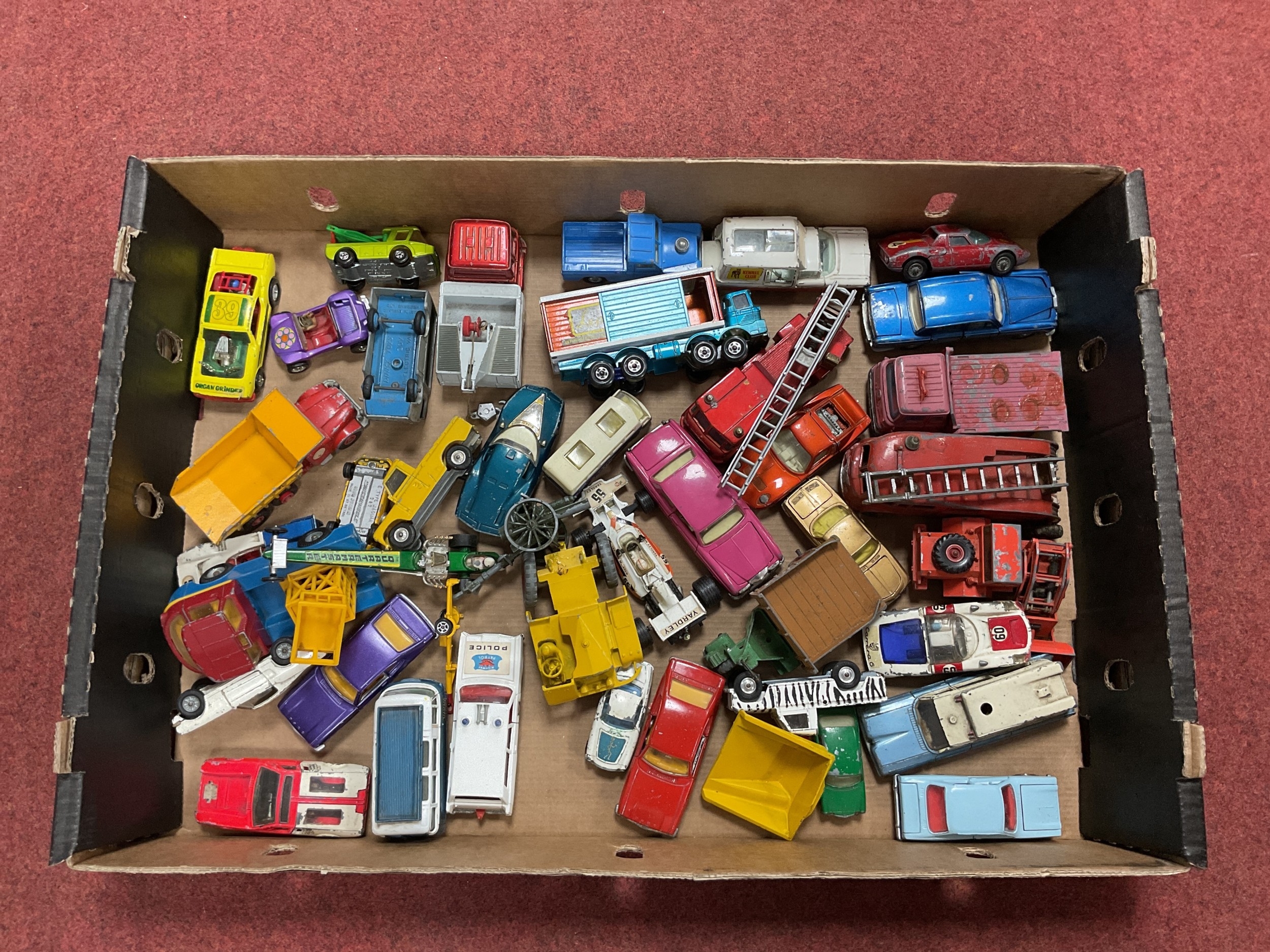 A Quantity of 1950's - 1970's Diecast Model Vehicles by Dinky, Corgi & Matchbox. All playworn. (One Box).