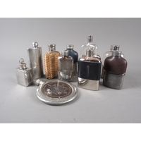 Ten late 19th early 20th century hip flasks, one with cup engraved leaf decoration, tallest 6" high
