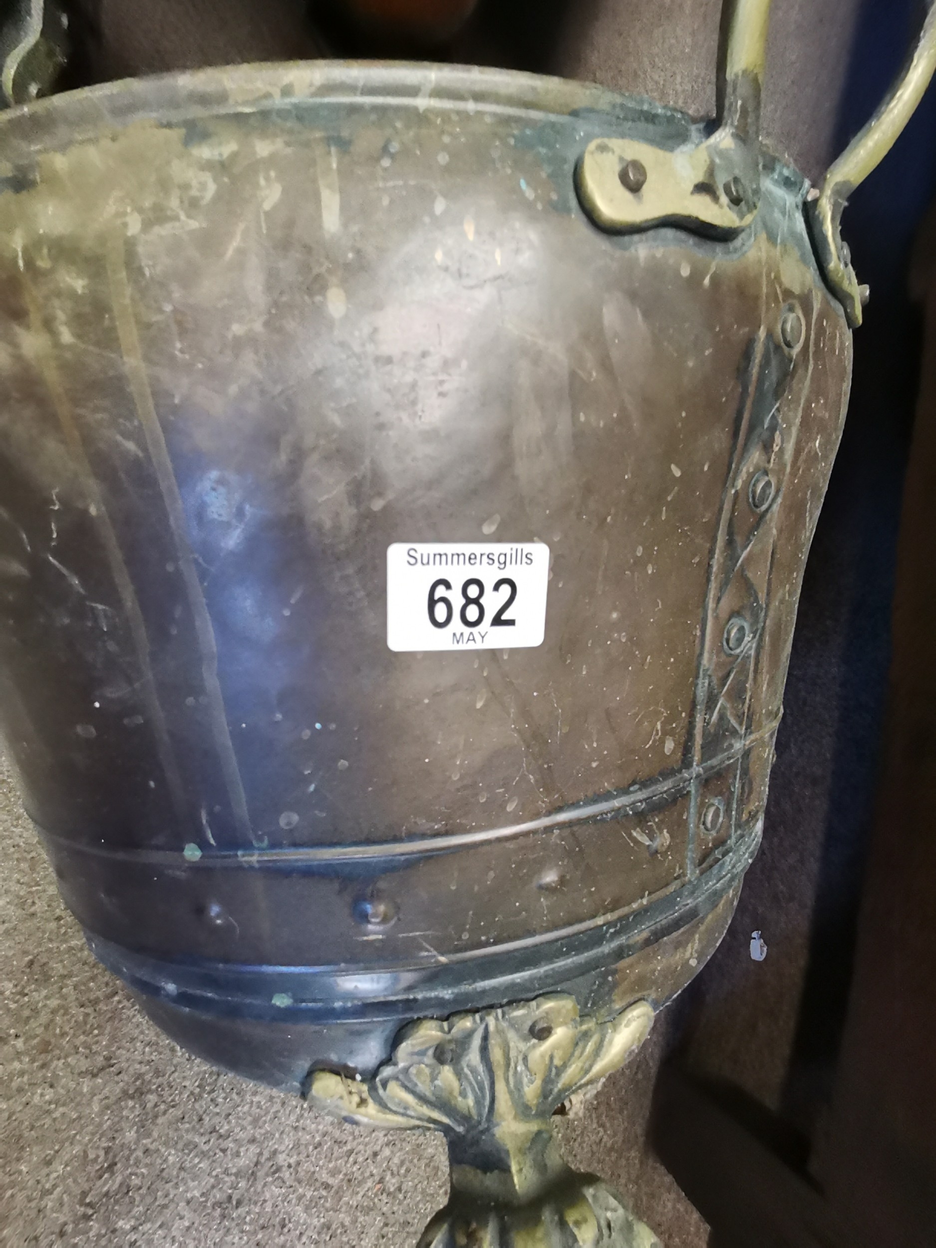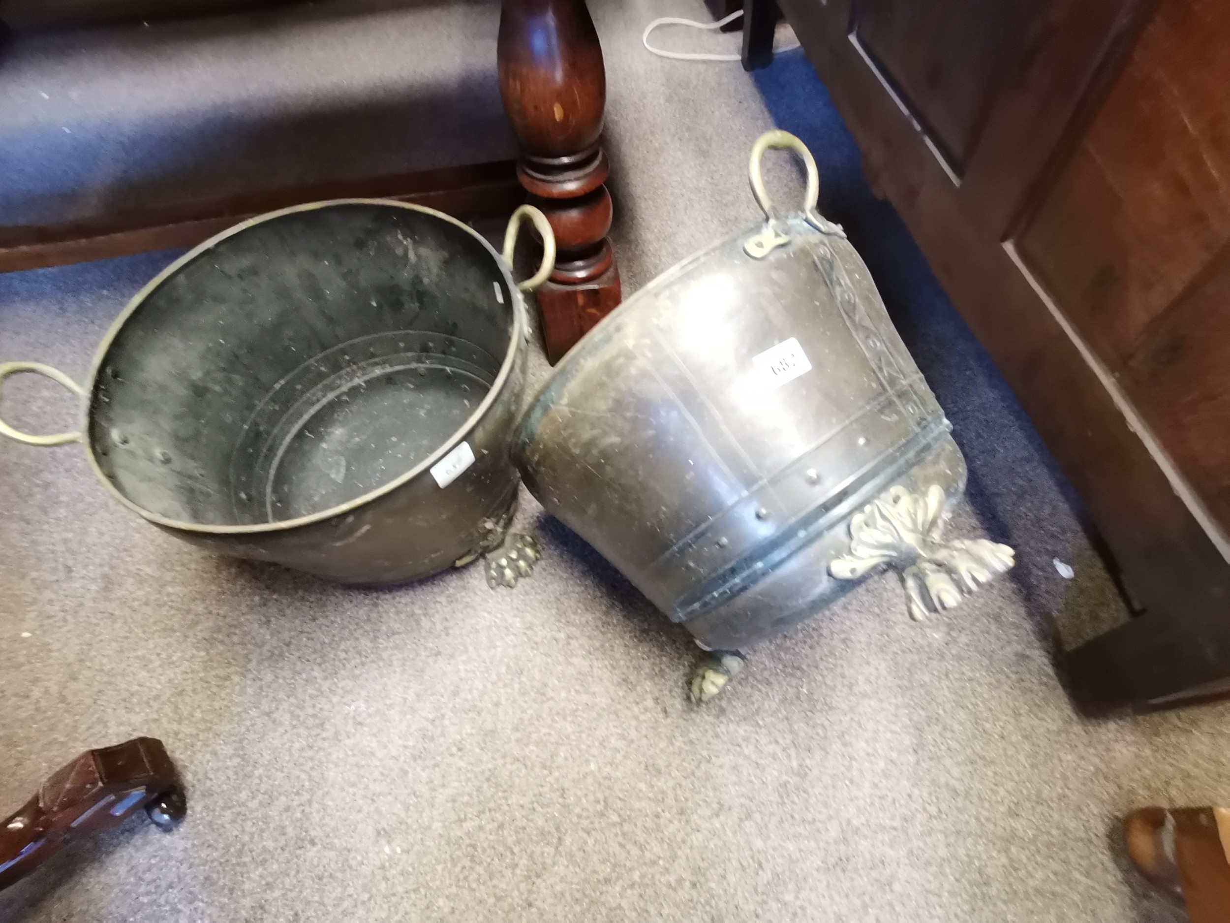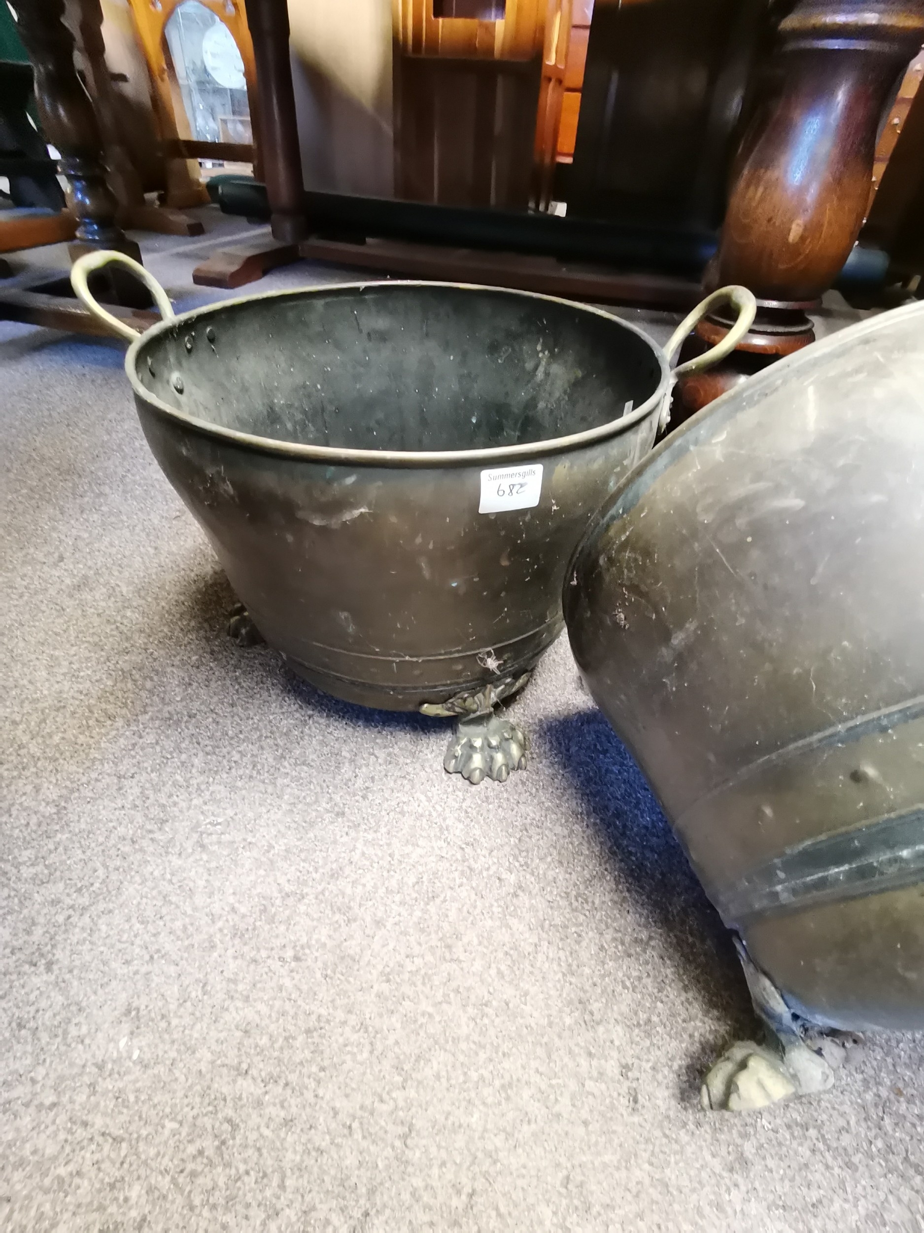 A pair of vintage brass coal buckets / planters with claw feet and handles 39cm diameter