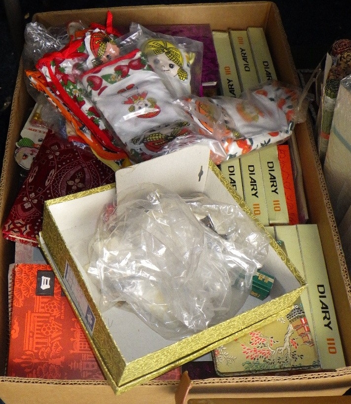 A large group of Chinese collectables to inc calendars, diaries, basketware etc (5)