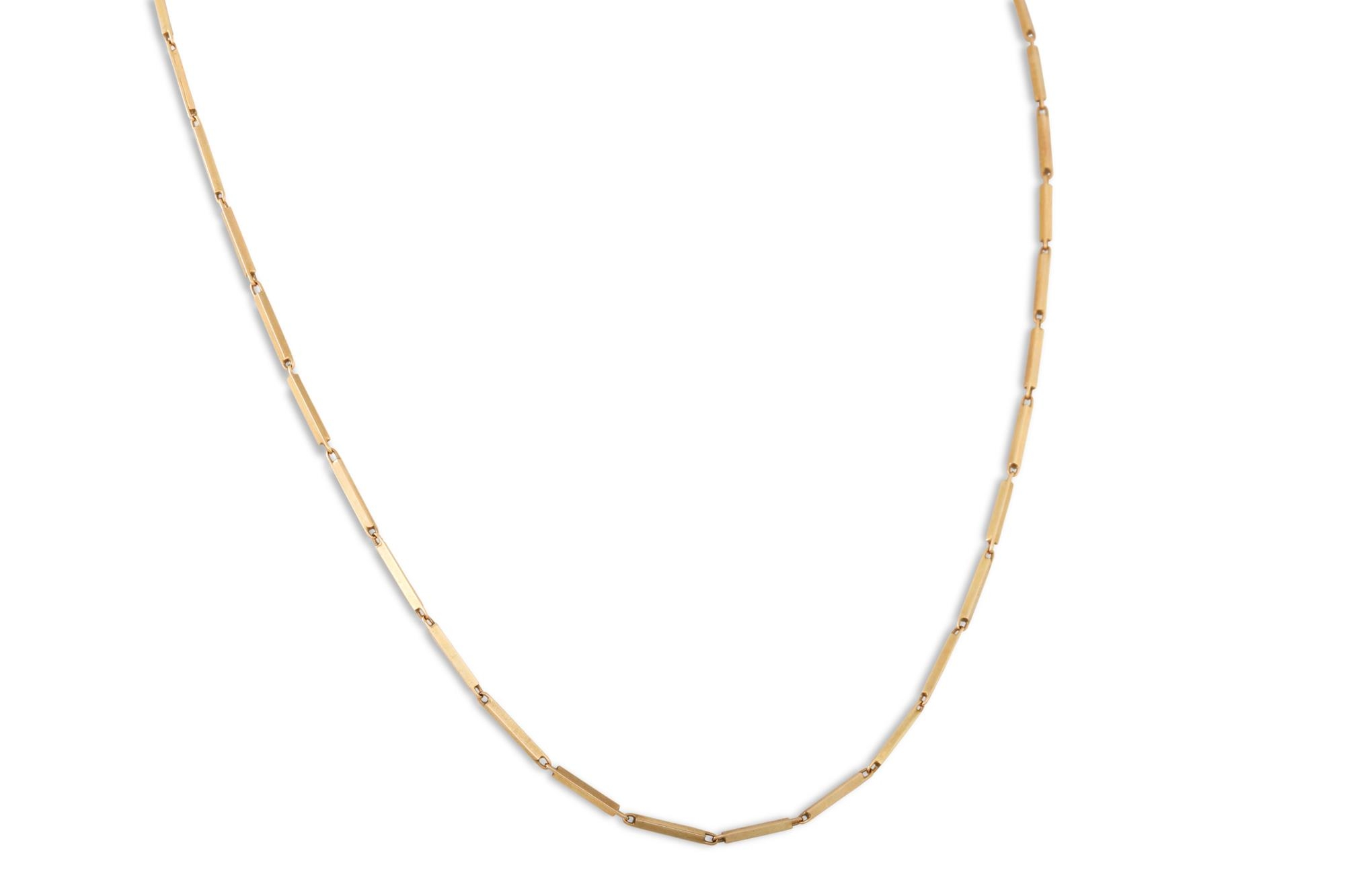 A 10CT YELLOW GOLD RECTANGULAR BOX LINK NECK CHAIN, 18" long, 6.7 g.