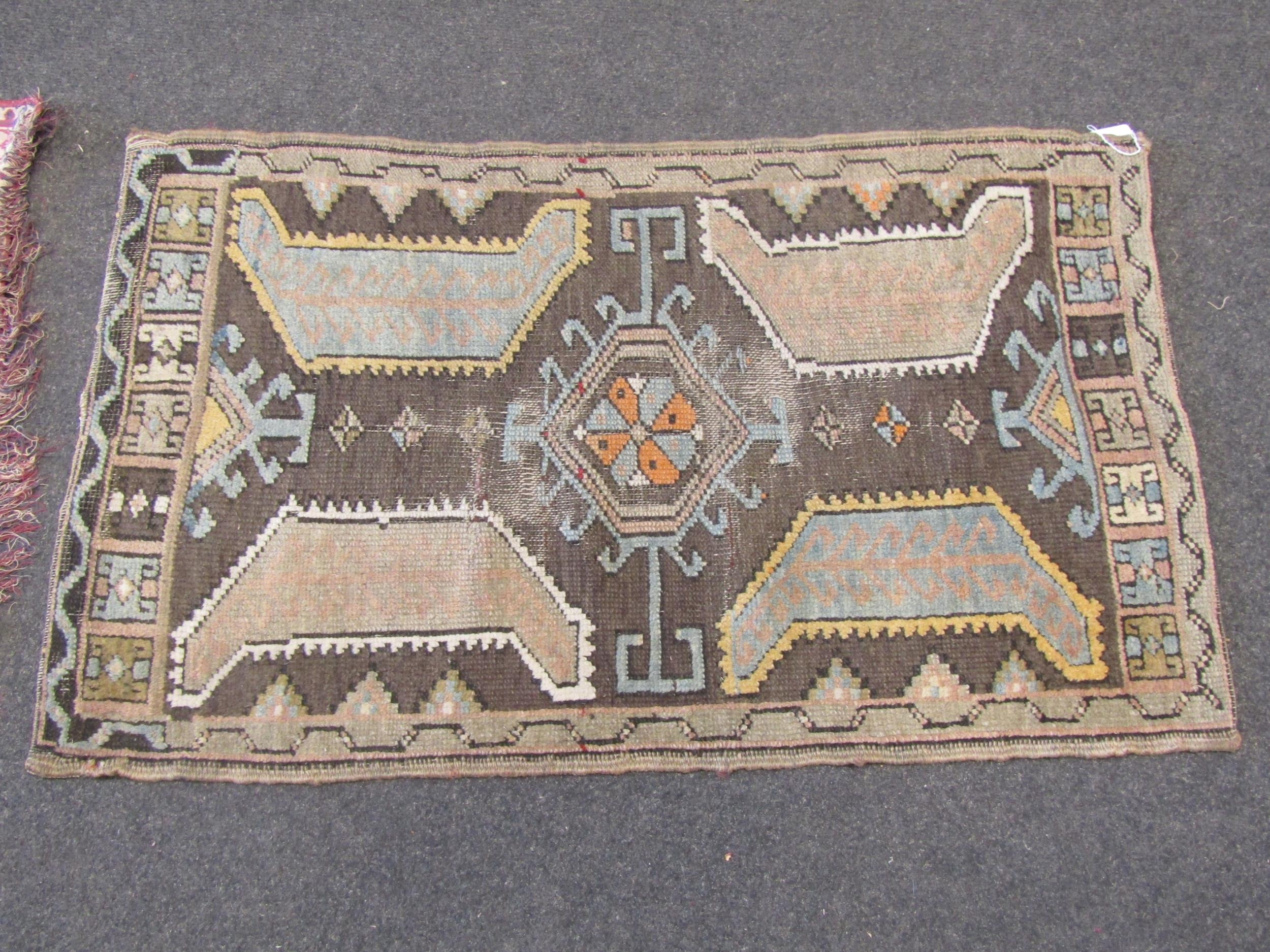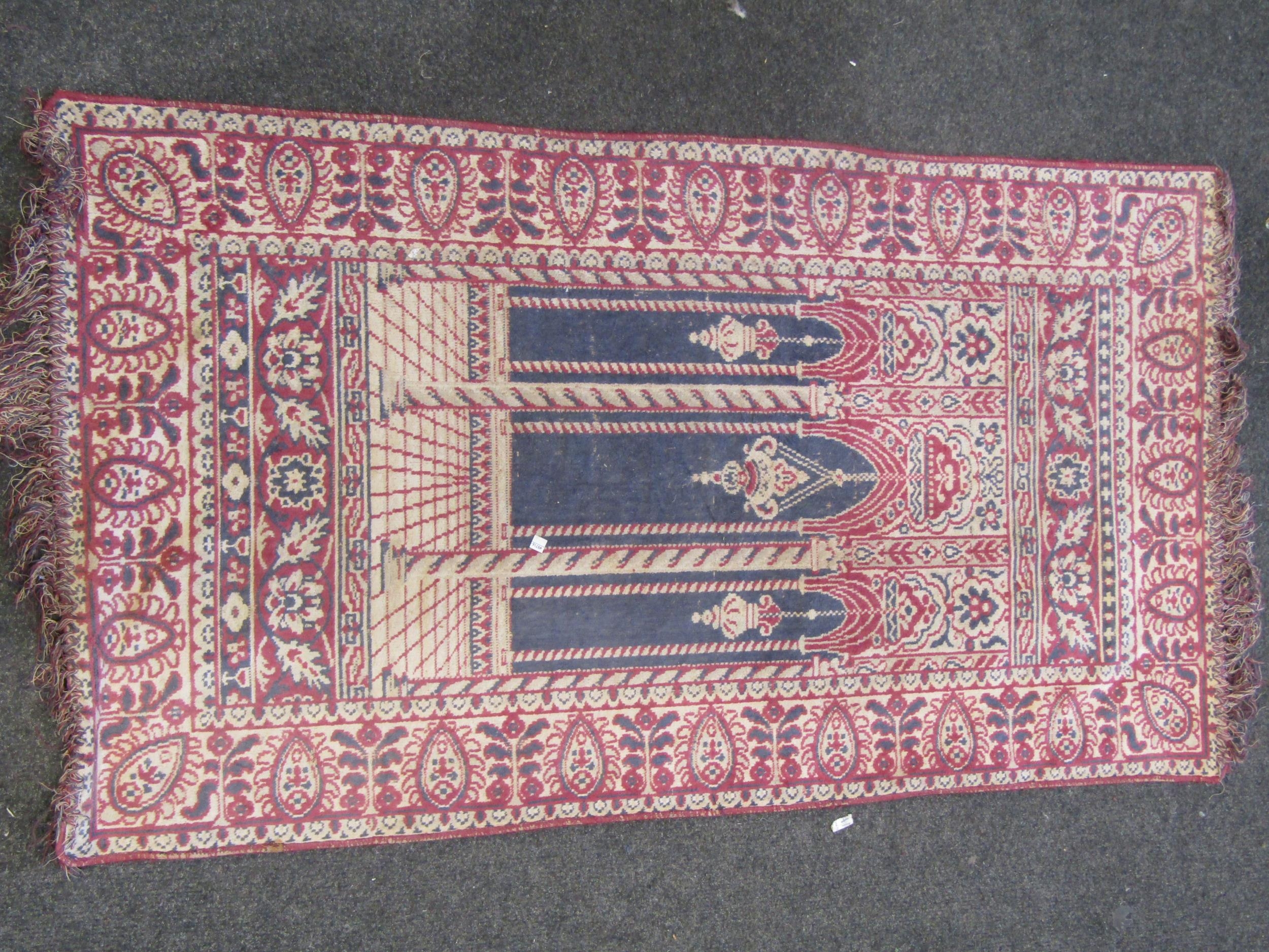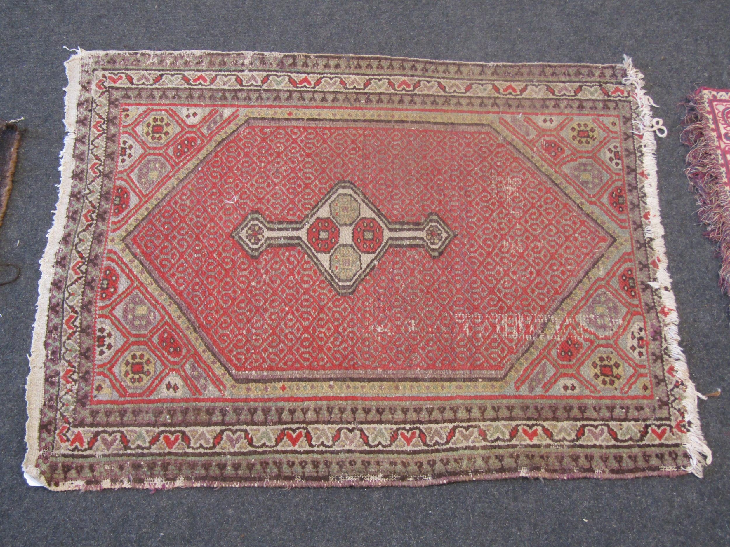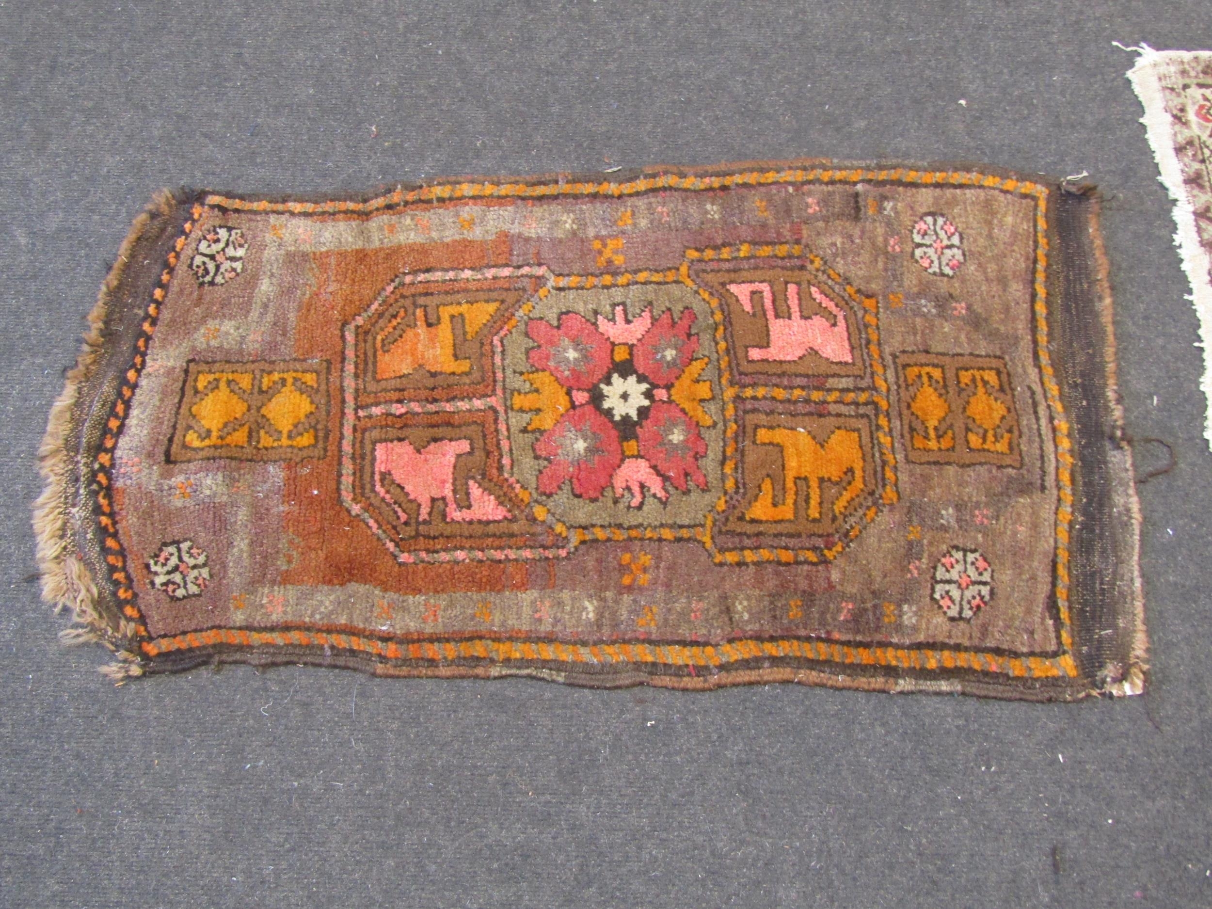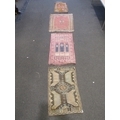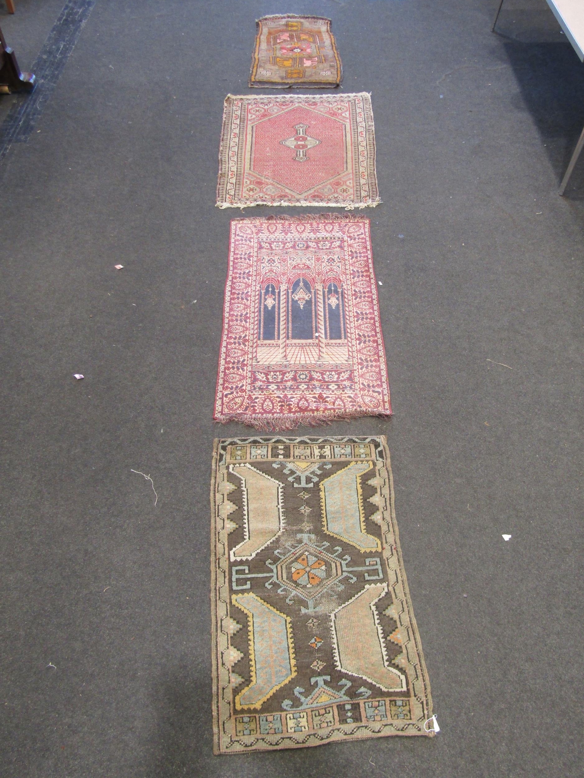 Four Eastern wool rugs, largest 100cm x 78cm, possibly prayer rugs, worn