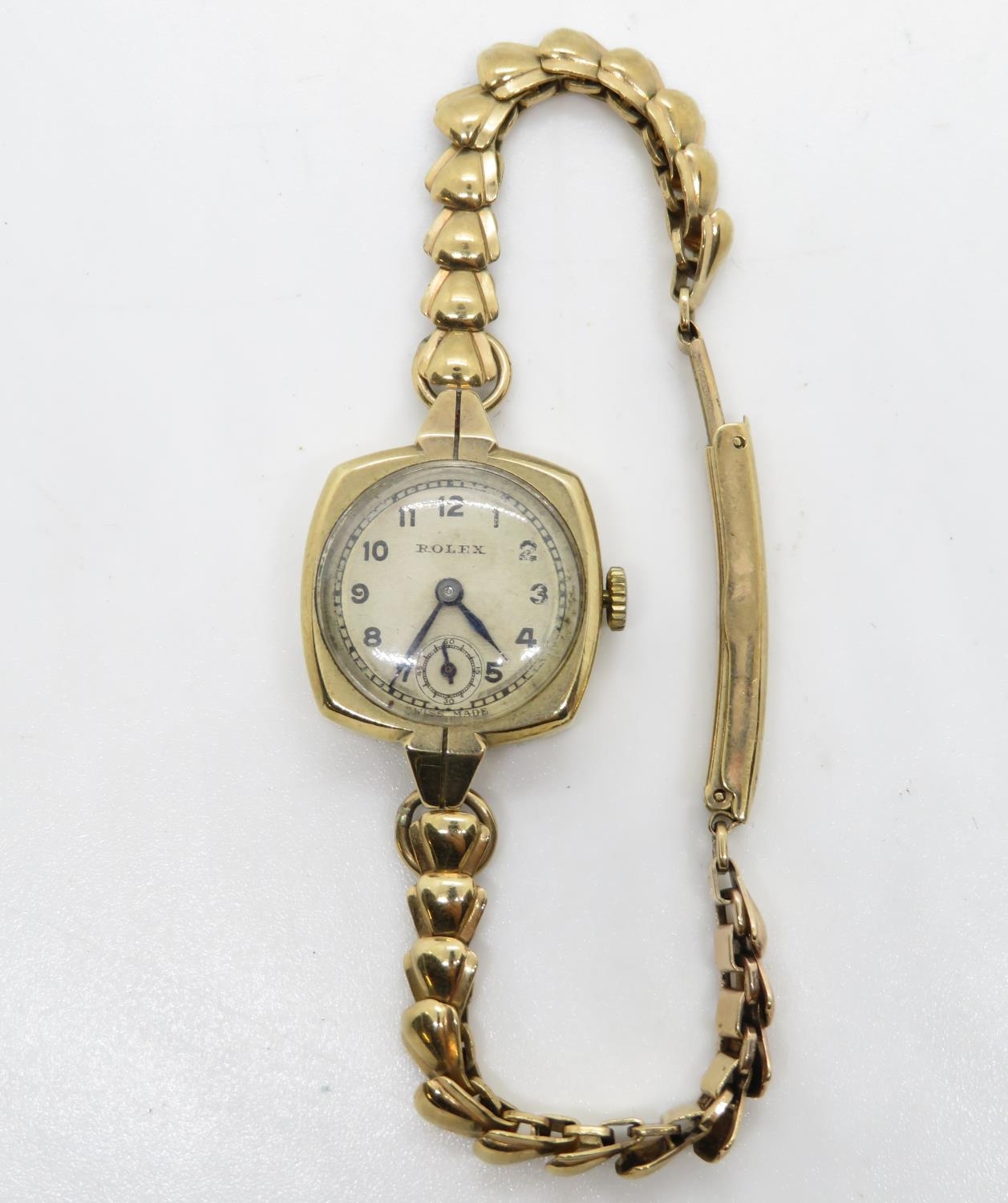 9ct gold ROLEX watch and strap spares or repairs fully HM Elinvar case 18.1g 20mm head
