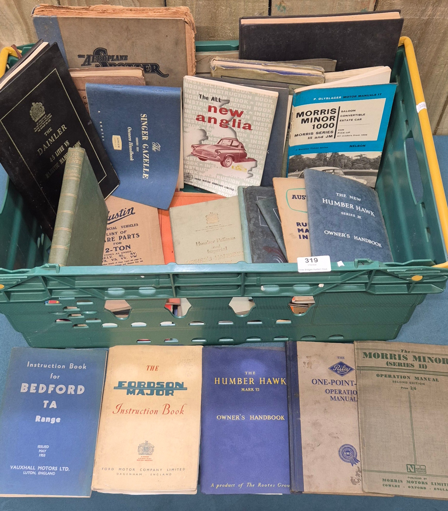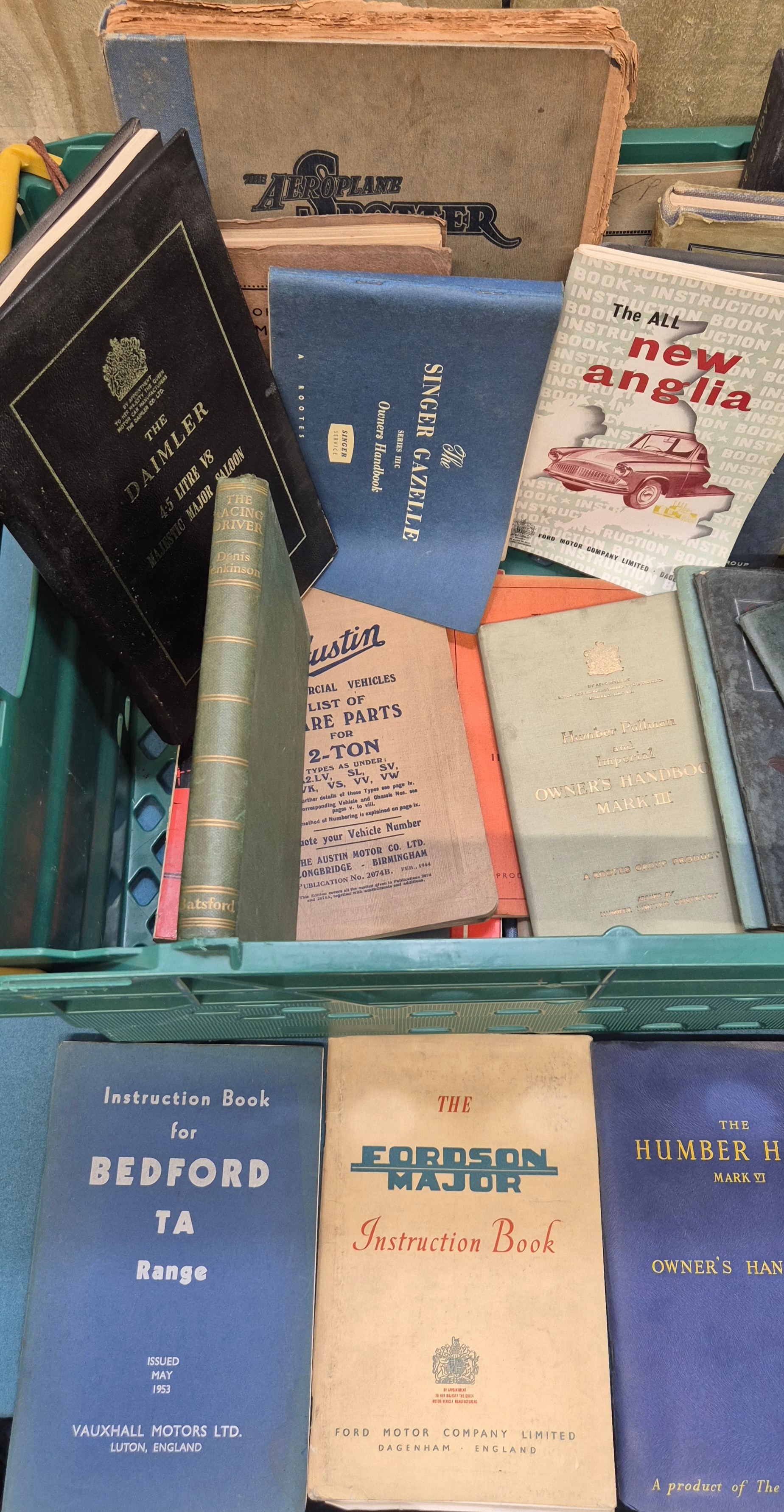 Large Collection of antique Car Manuals; Bedford Truck, Morris Minor, Ford Popular & many more.