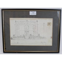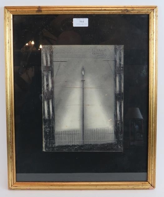 Attributed to Laurence Stephen Lowry RA (1887-1976) - 'Street lamp post and railings', pencil sketch on board, possibly a book cover, bears a signature and further writing, 28cm x 21cm, framed.
