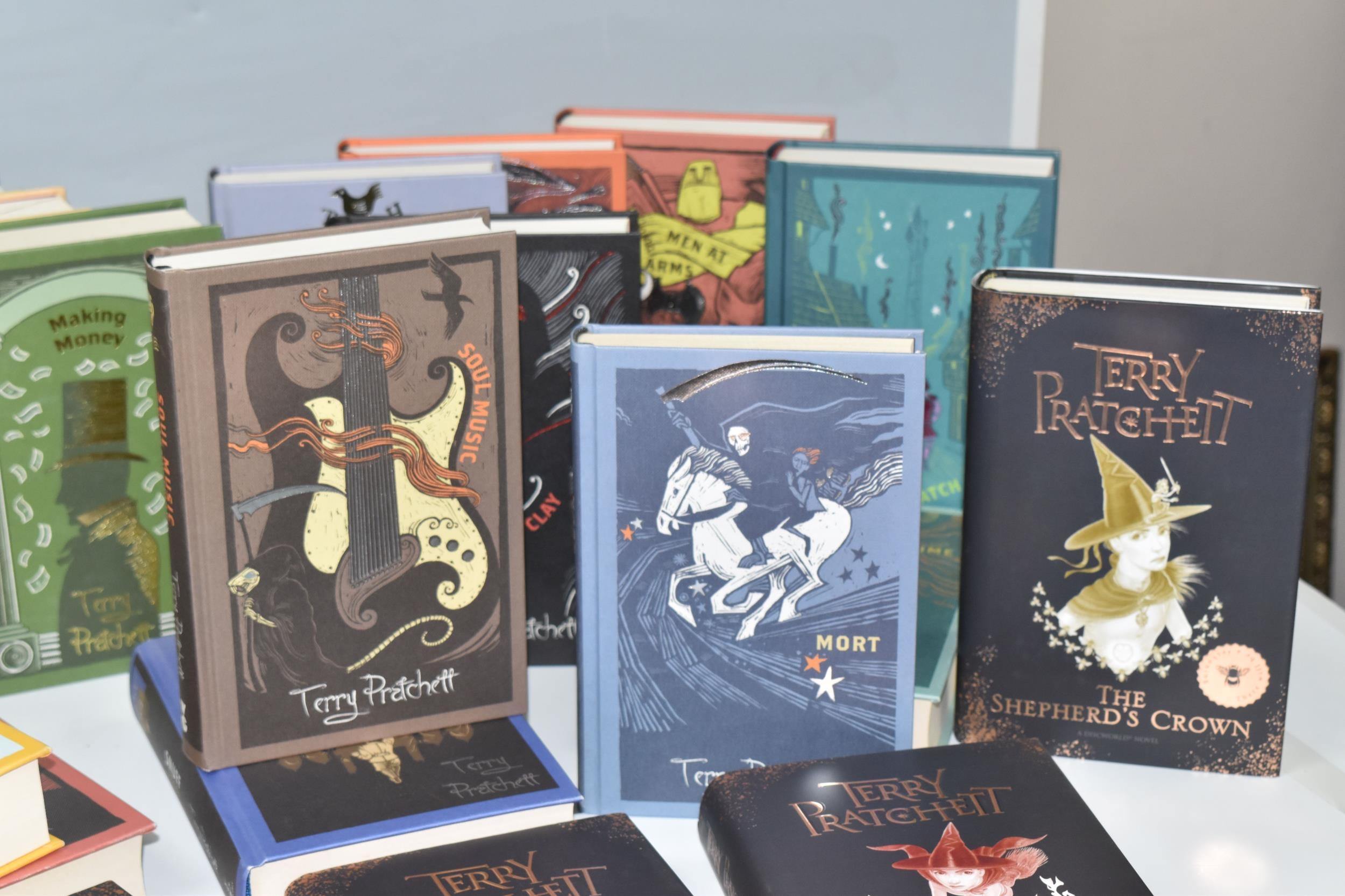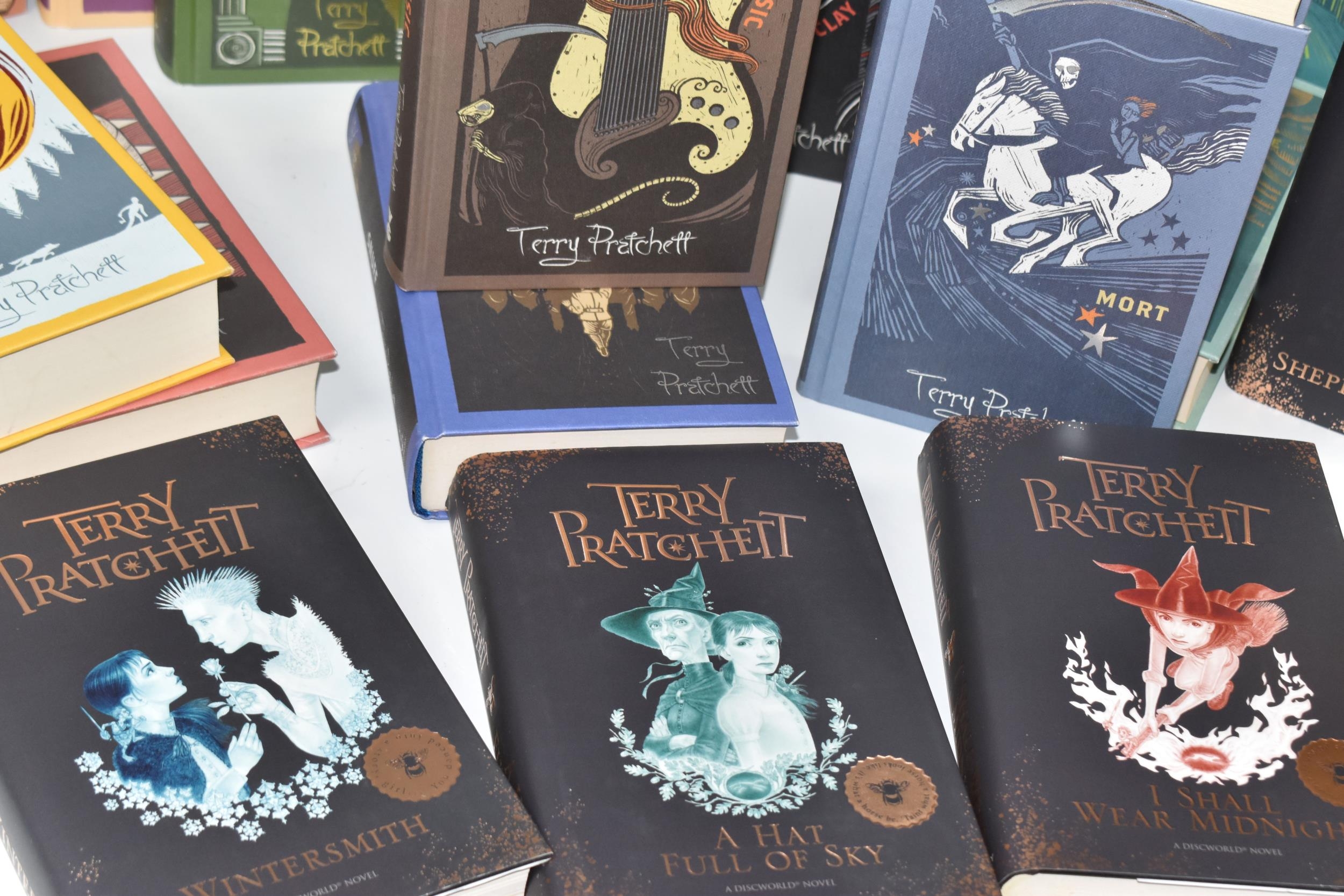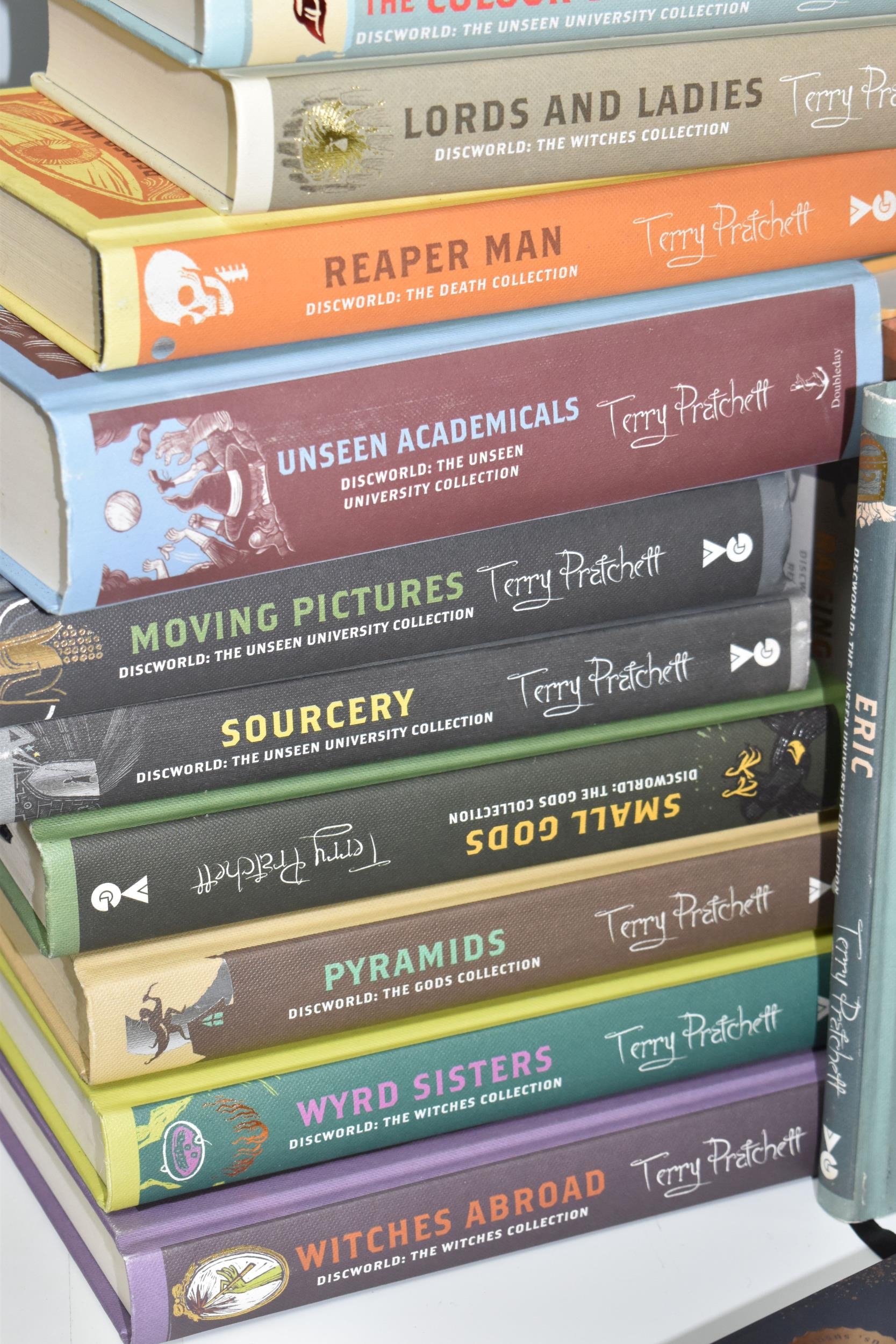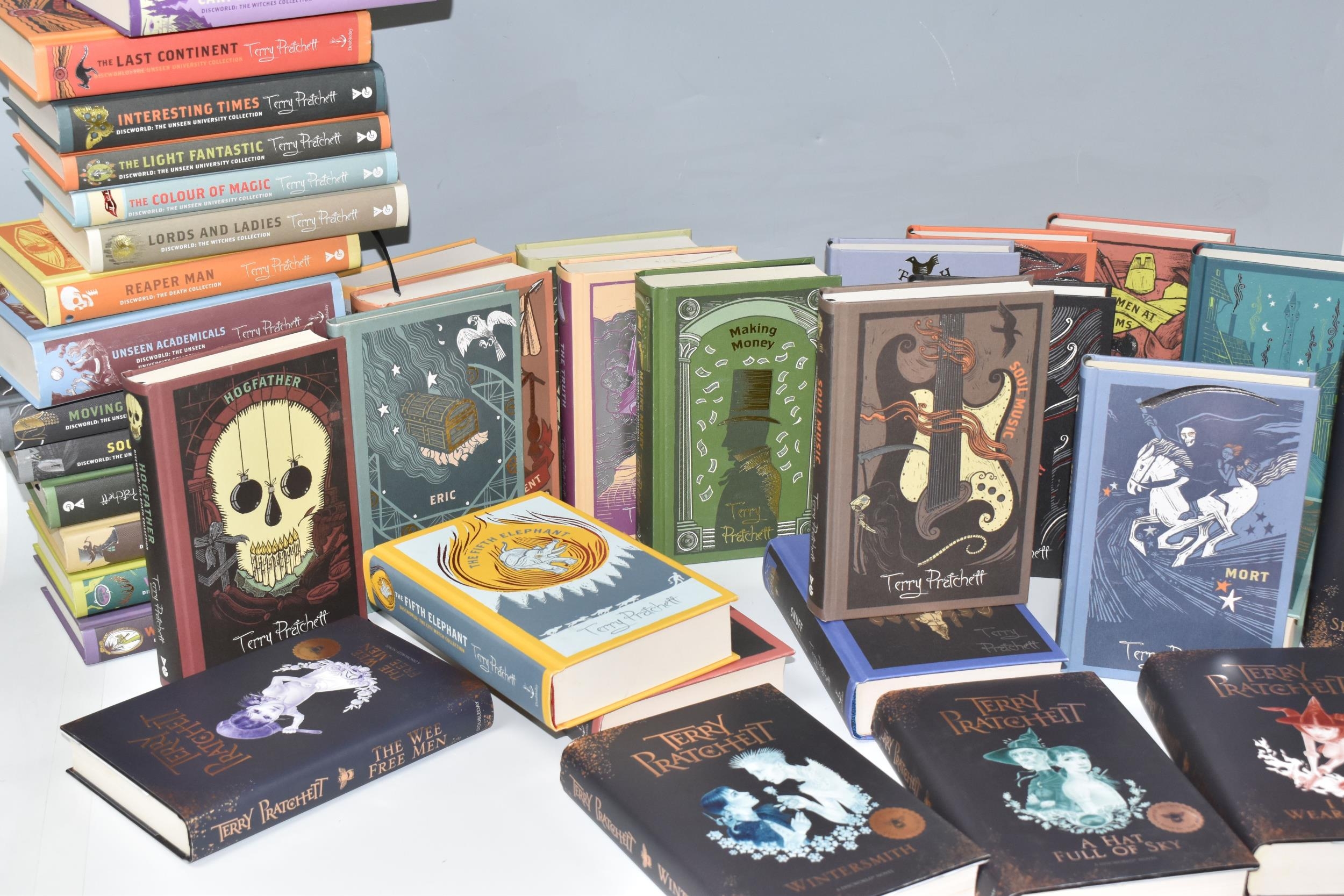 TWO BOXES OF TERRY PRATCHETT DISCWORLD NOVELS to include thirty-four 'Discworld Collectors Library' editions comprising eight novels of the 'Unseen University Collection,' six novels of 'The Witches Collection, two novels of 'The Gods Collection,' five novels of 'The Death Collection), five novels of 'The Industrial Revolution Collection,' eight novels of 'The City Watch Collection,' and five 'gift edition' titles comprising 'The Wee Free Men,' 'A Hat Full of Sky,' 'Wintersmith,' 'The Shepherds Crown,' and 'I Shall Wear Midnight (2 boxes) (Condition Report: some scratches and marks to spines and the tops of pages, possible foxing in areas)