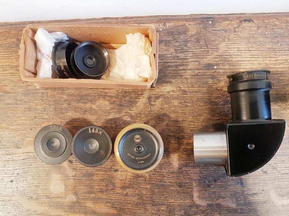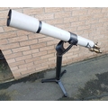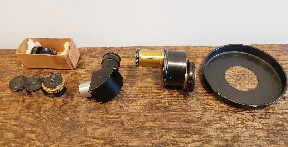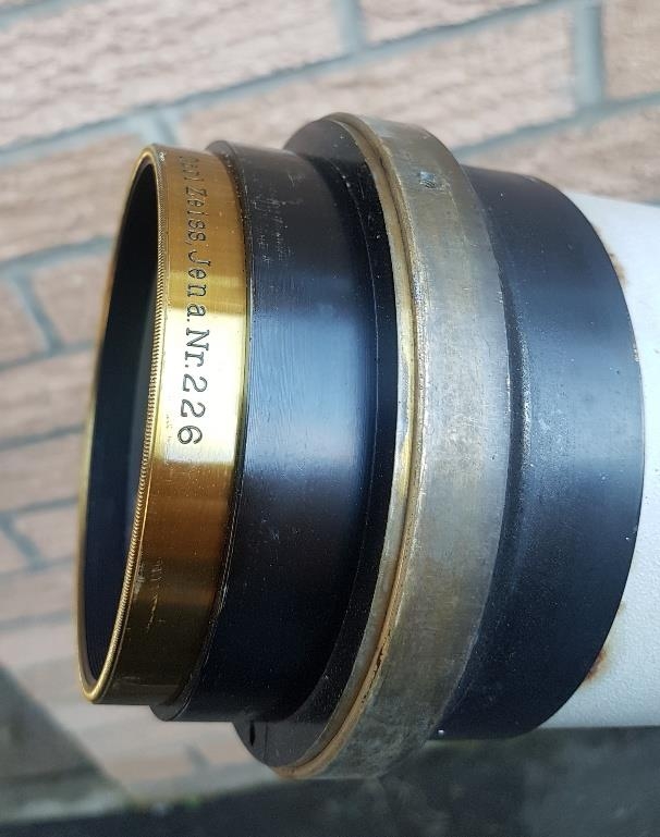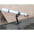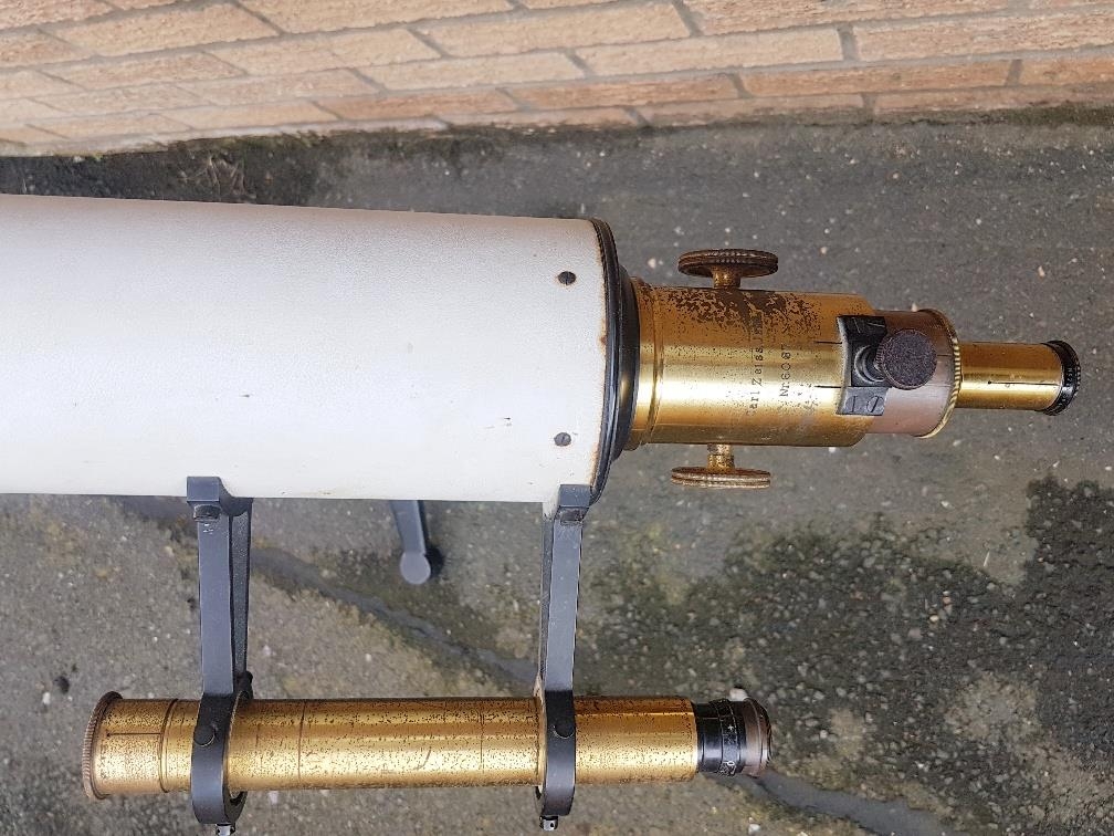 Carl Zeiss Astronomical Telescope circa 1900 reference 6067, lens reference 226 signifying very early model. Complete with stand and selection of lenses. Overall height 36 inches x scope length of 46 inches. Lens diameter is 80mm. Please note there is no case for this telescope or stand.