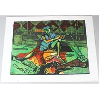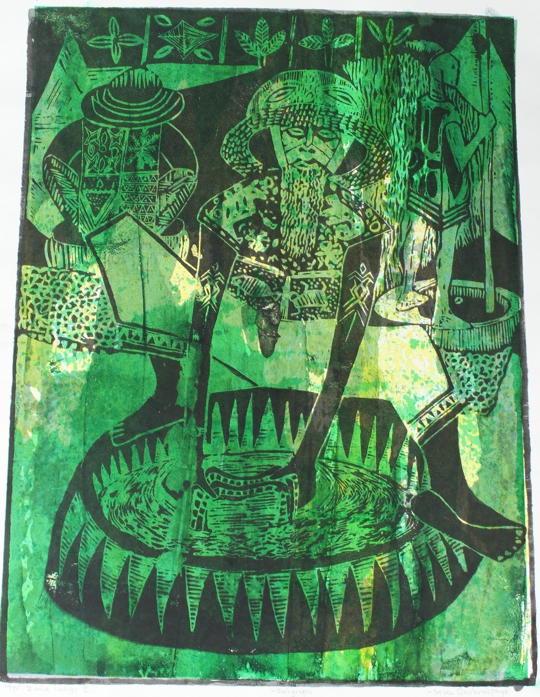 BRUCE ONOBRAKPEYA (1932 NIGERIA) 'Zaria Indigo' serigraph / screenprint 14/75 signed and inscribed dated Lagos March 2012 unframed 67 x 50cm image