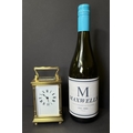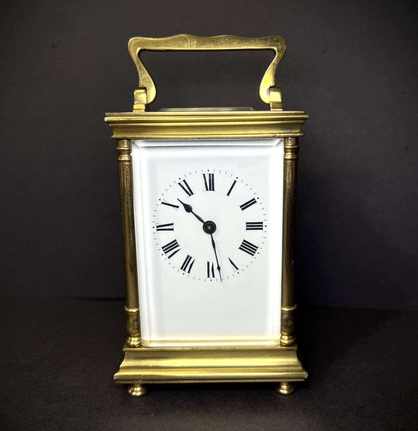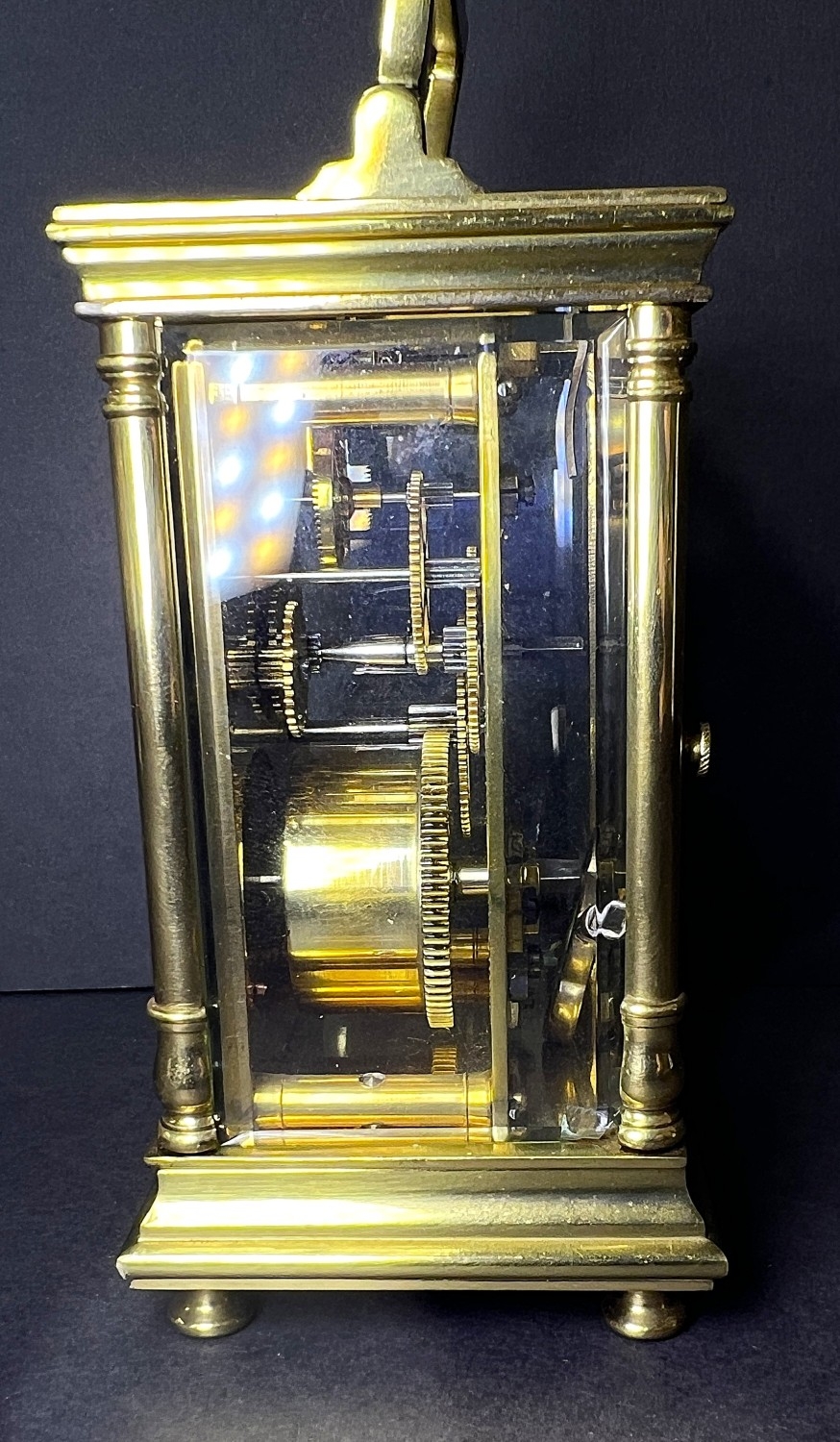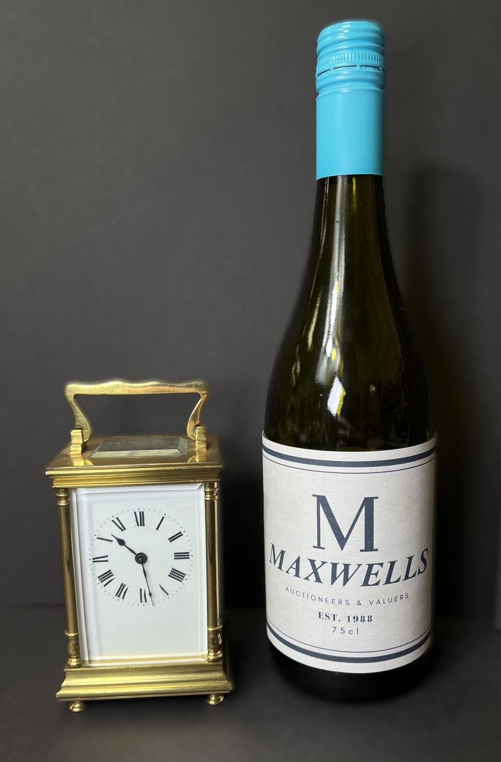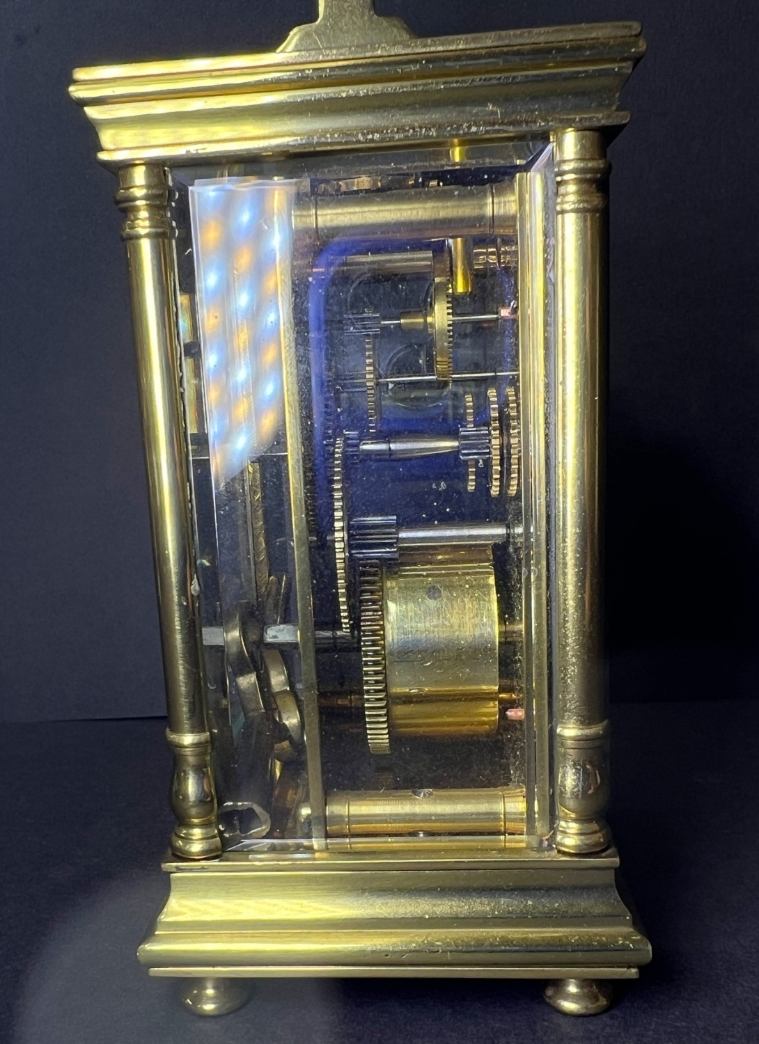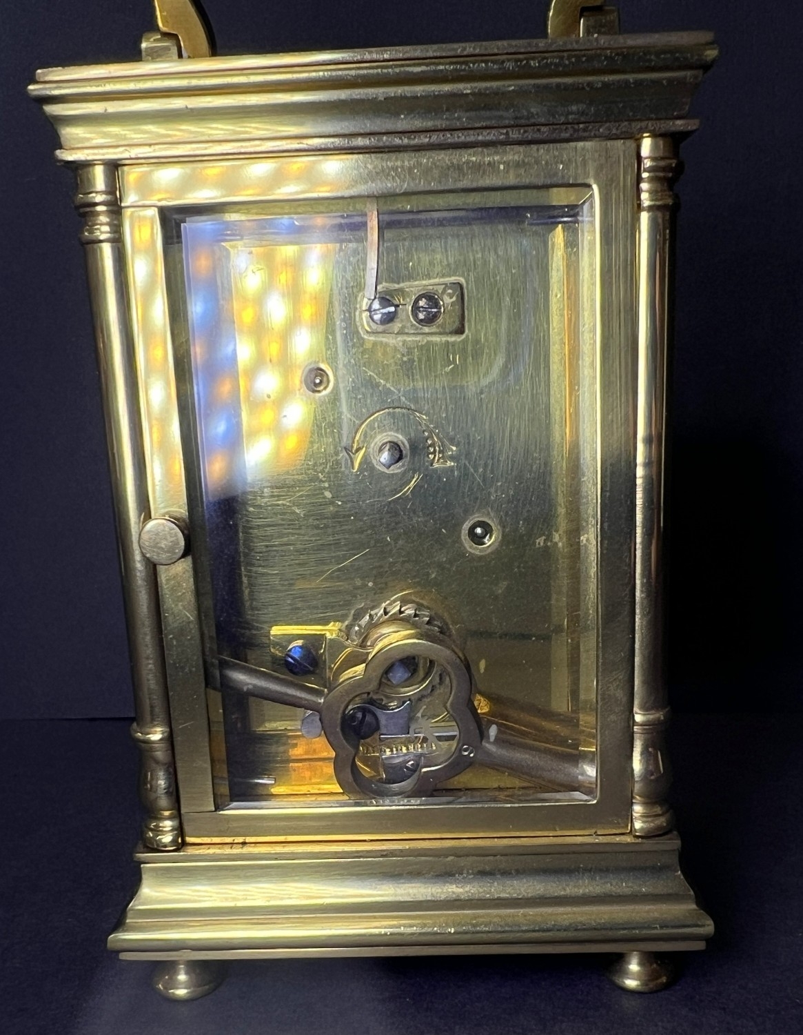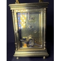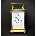 A brass carriage clock with white dial and timepiece movement, height 13cm; 2 small cloisonnee ashtrays