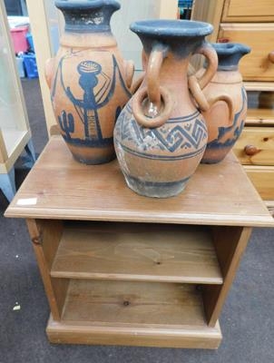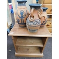 Pine cabinet with 3 x terracotta vases