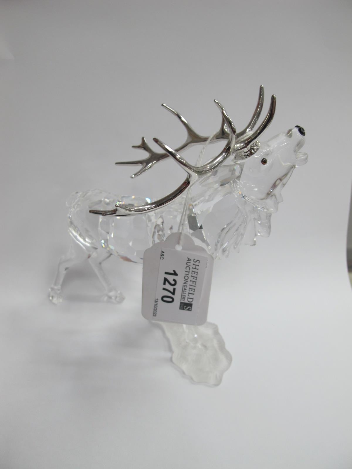 Swarovski Crystal Glass Stag, its two front feet on frosted base, 14cm high.