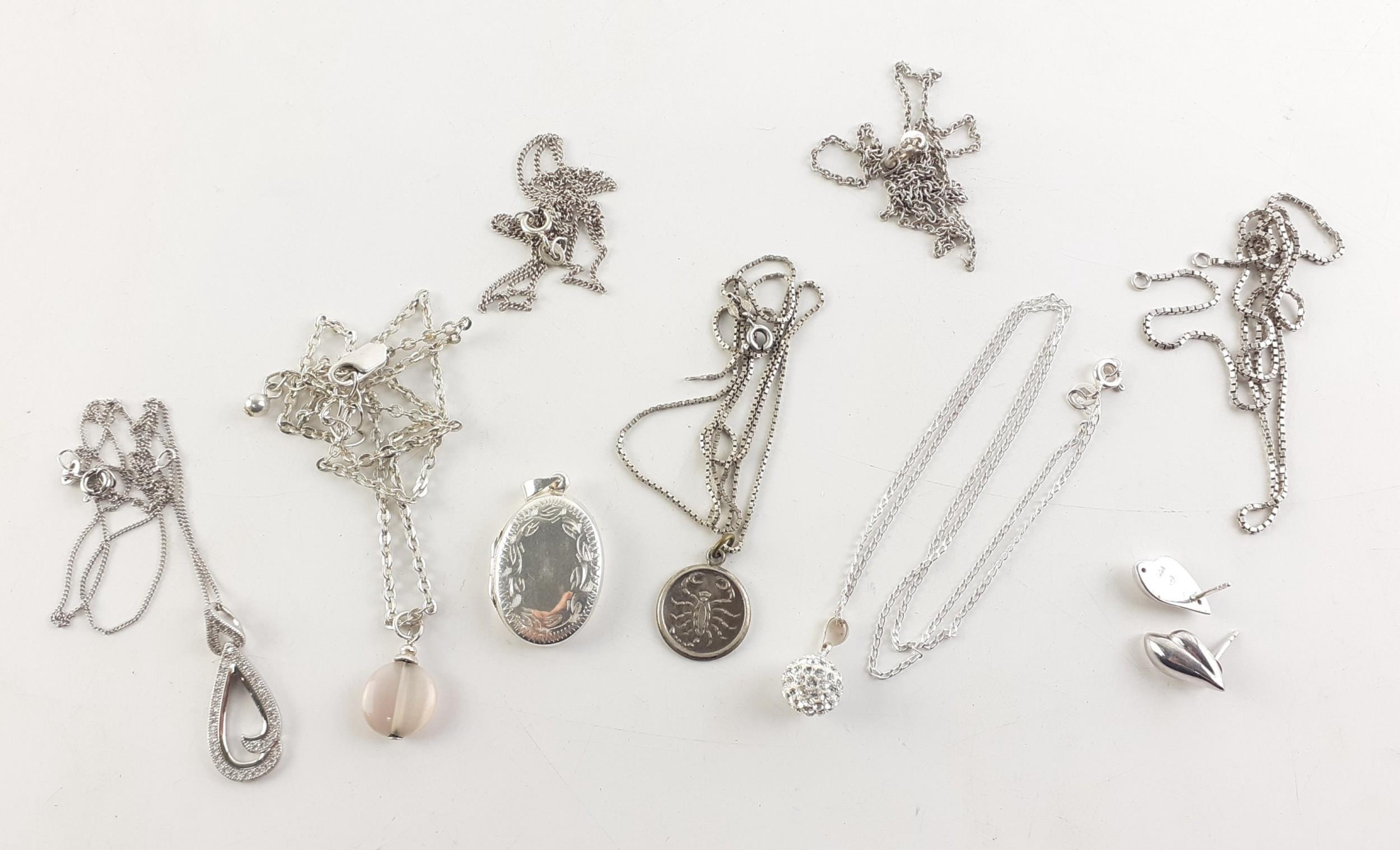 Silver hallmarked / 925 stamped chains, lockets, earrings etc. Gross weight 30g approx