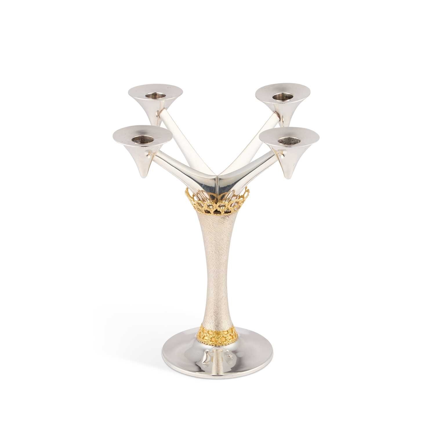 STUART DEVLIN: AN ELIZABETH II PARCEL-GILT SILVER CANDELABRUM