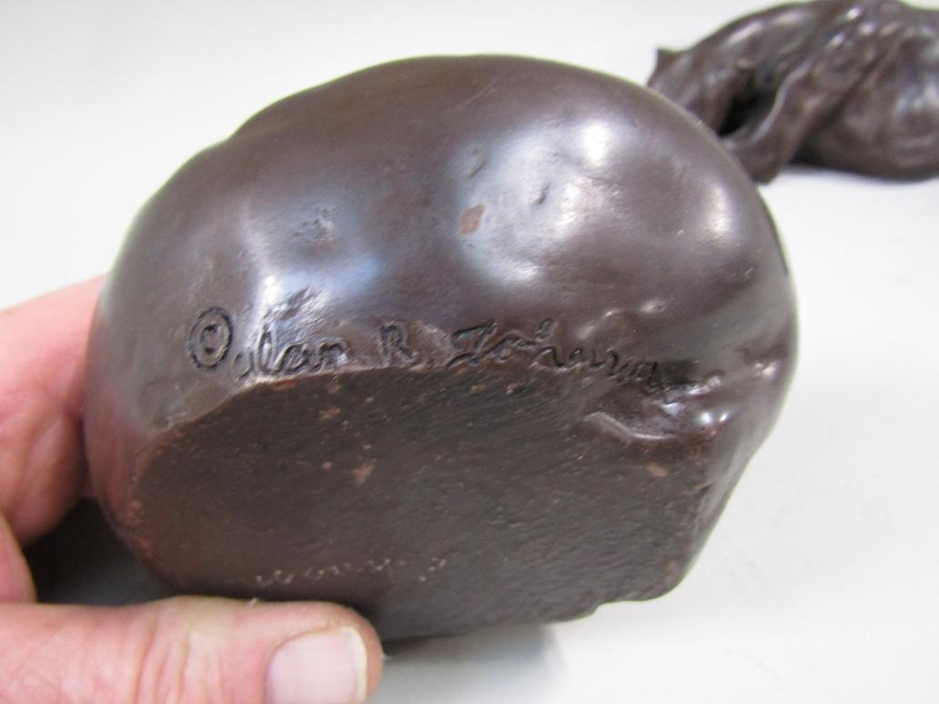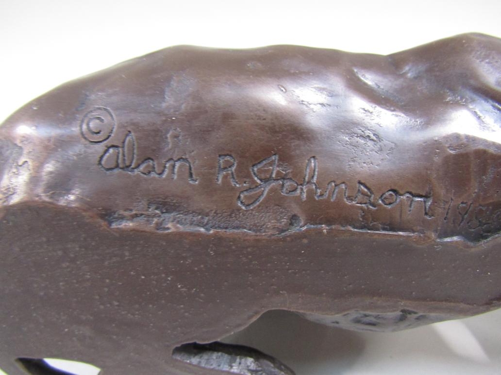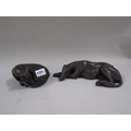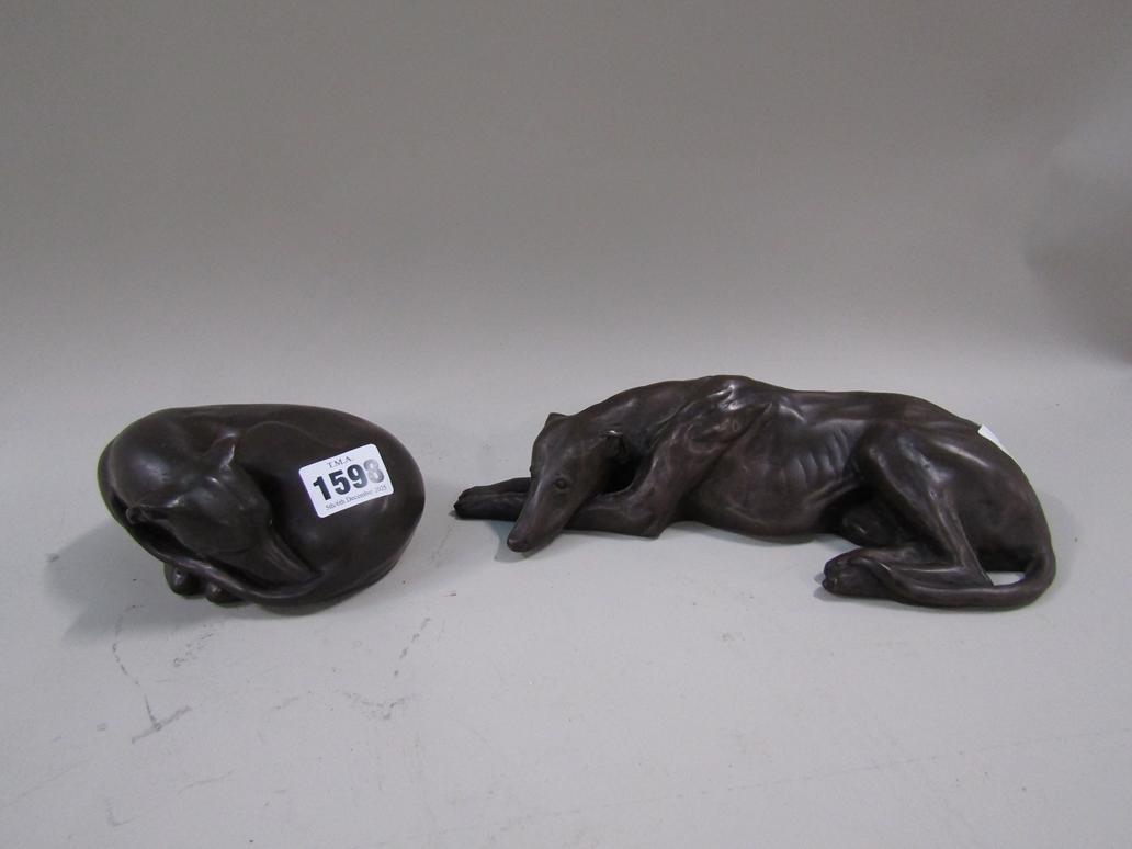 TWO PATINATED BRONZE FIGURE GROUPS OF GREYHOUNDS RESTING, SIGNED ALAN R JOHNSON