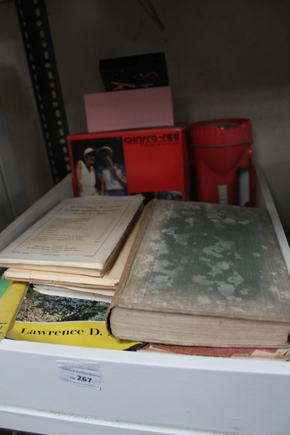 BOX CONTAINING VINTAGE BOOKS, INFRA RED HEATER AND A TORCH