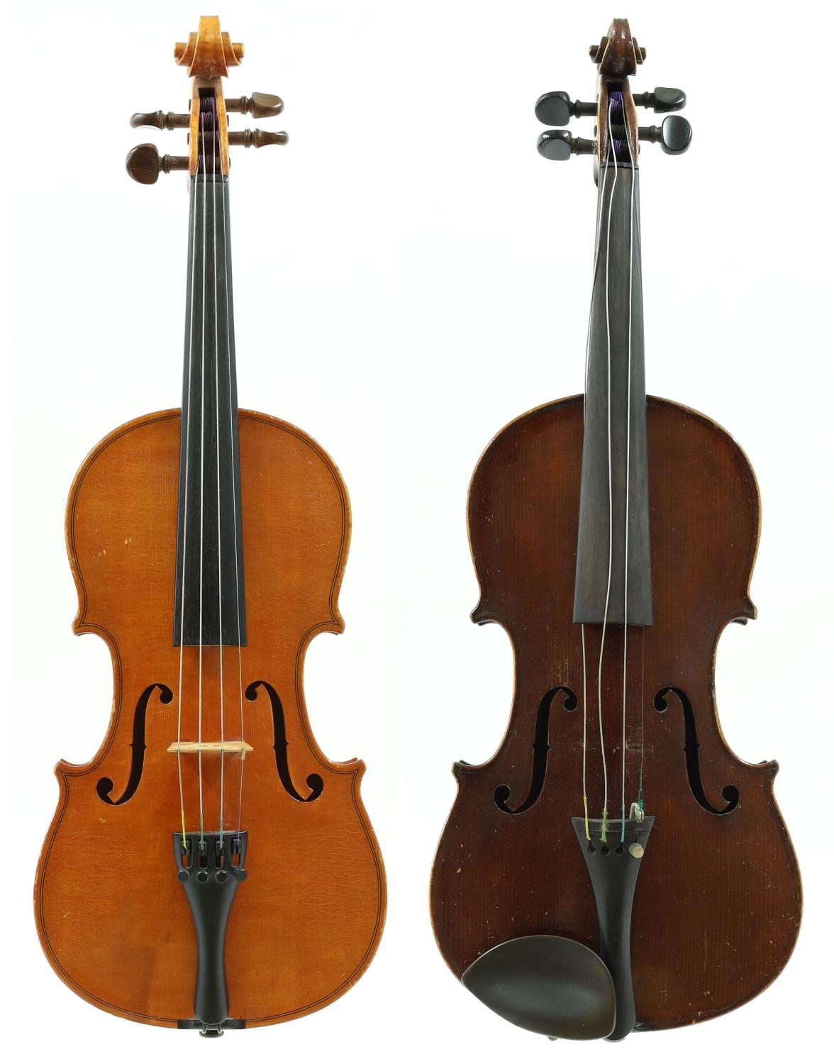 Mid 20th century German three-quarter size violin, 13 3/16", 33.50cm; also another mid 20th century three-quarter size violin, 13 3/16", 33.50cm (2)