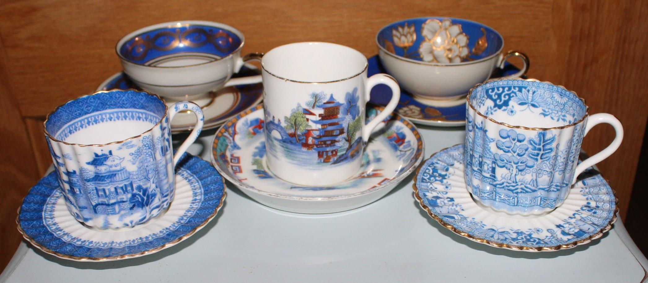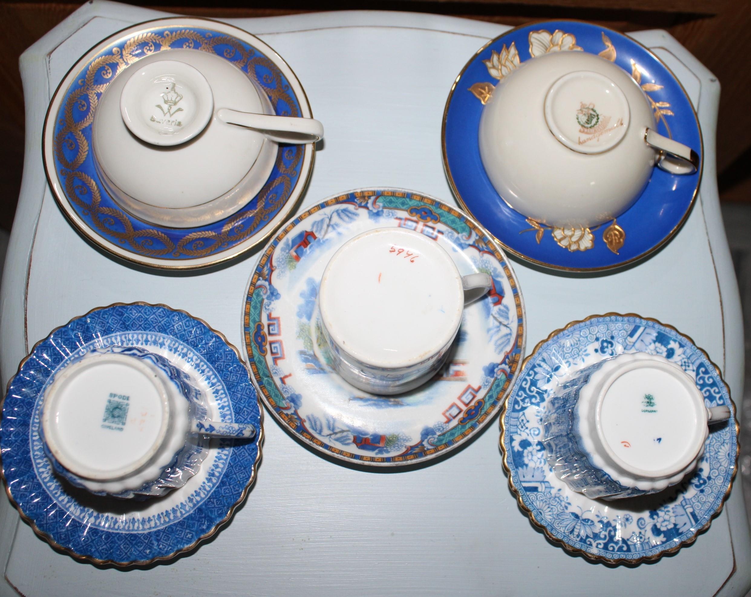 Five Mini Collectable Cups And Saucers .Various Designs/Makers & Marks