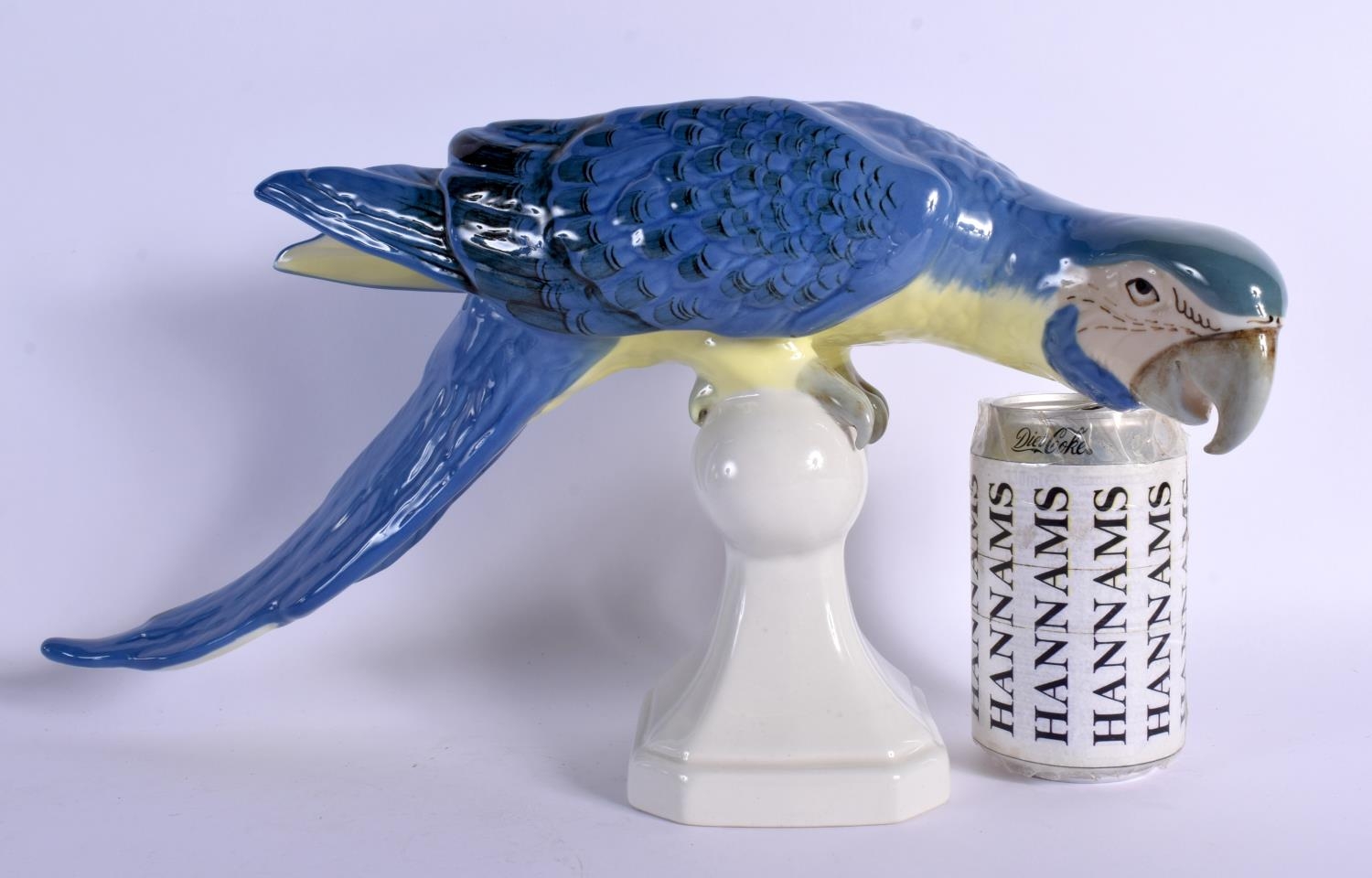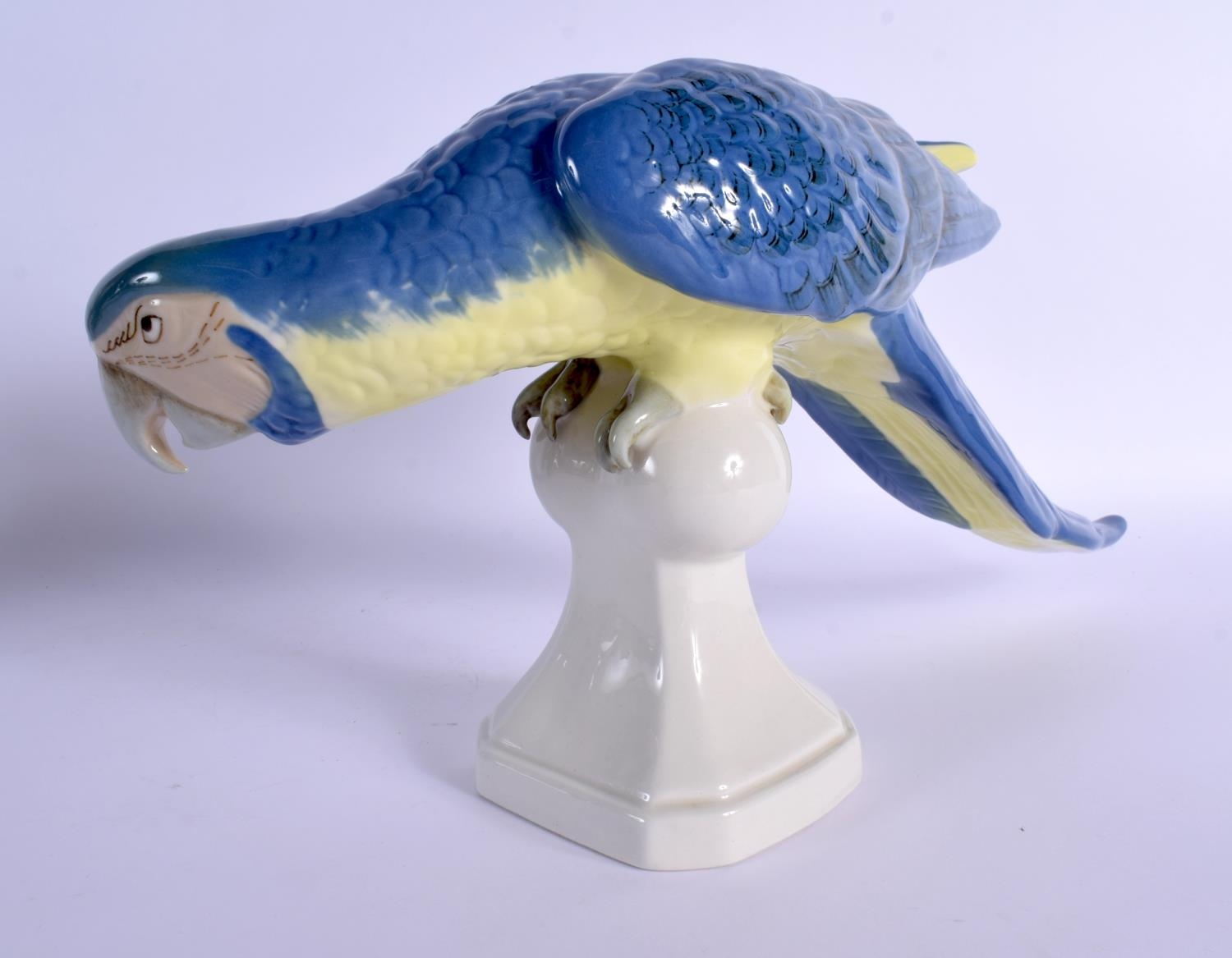 A LARGE ROYAL DUX PORCELAIN FIGURE OF A MACAW PARROT. 24 cm x 32 cm.