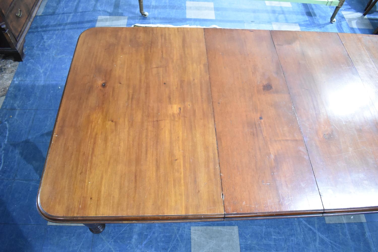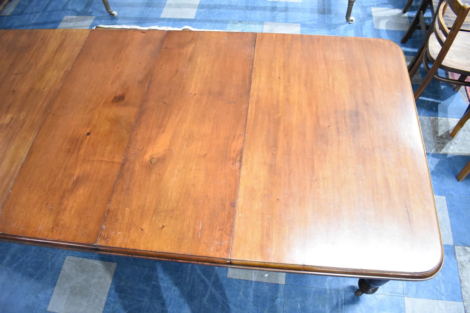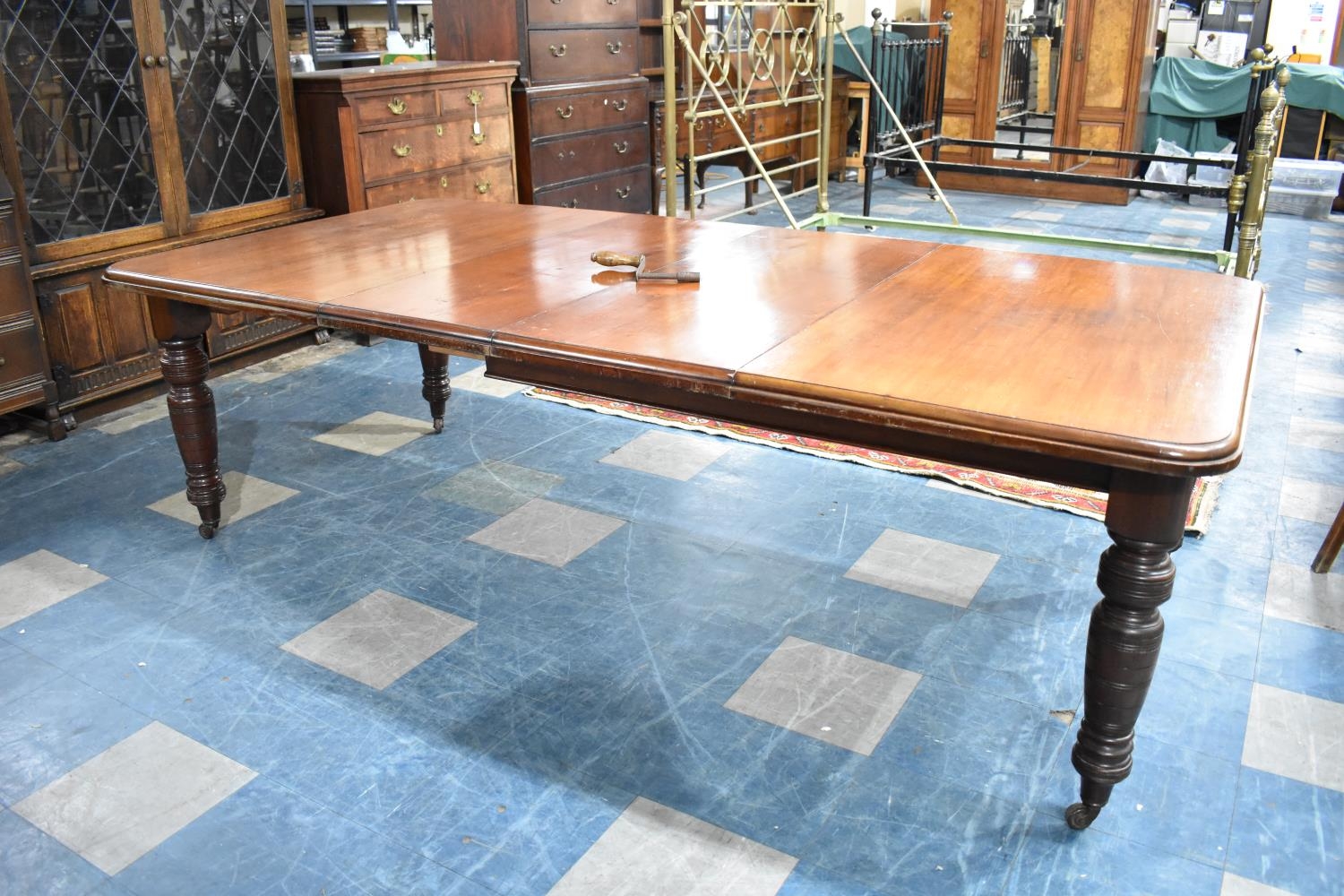 A Late Victorian/Edwardian Mahogany Wind Out Dining Table with Two Extra Leaves on Turned Supports Culminating in Castors, Extends to 237x120cms
