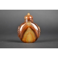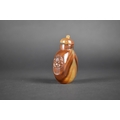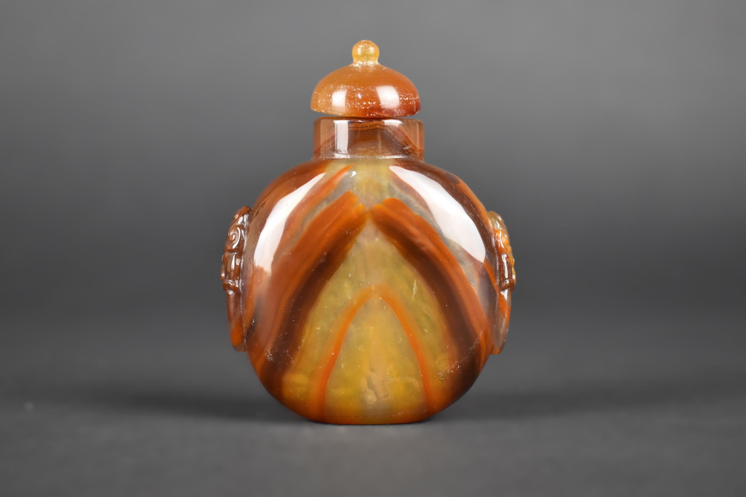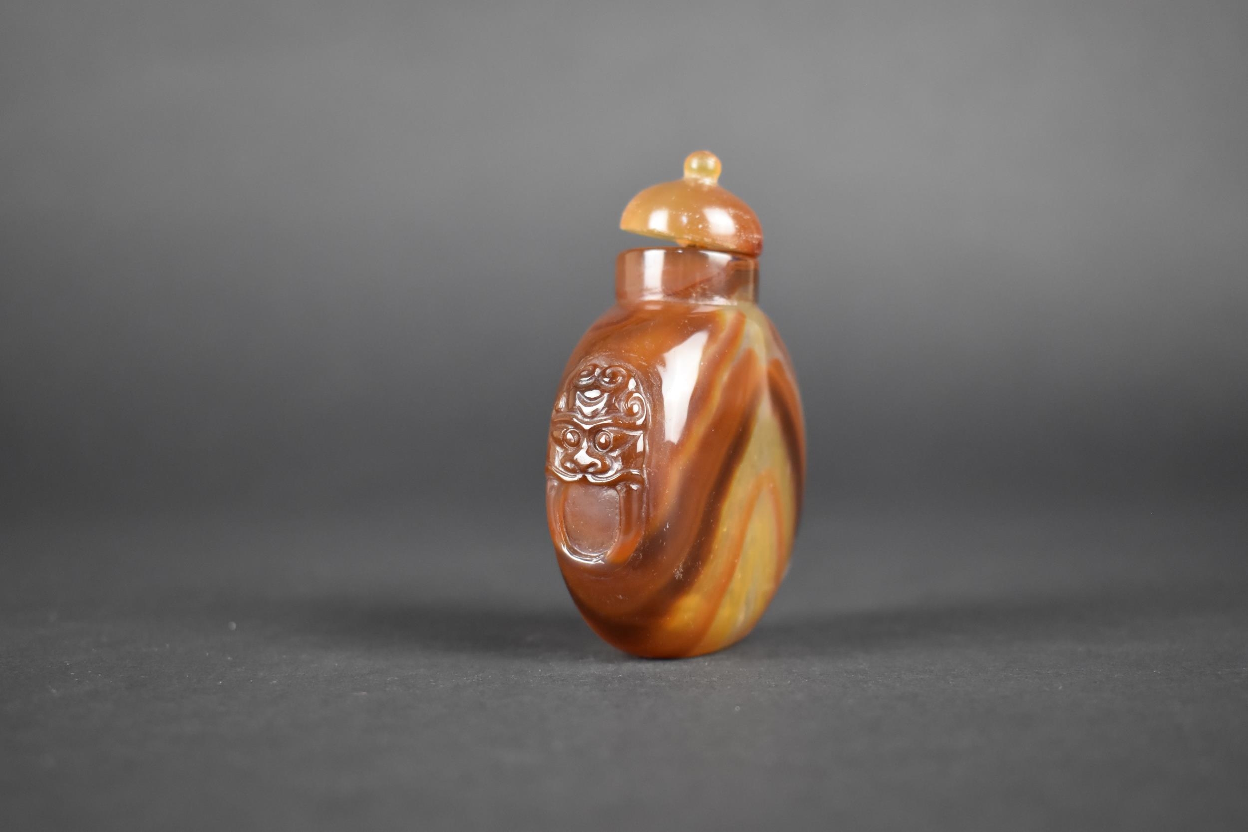 A Chinese Hardstone Snuff Bottle with Carved Lion Ring Mask Faux Handles, 7.5cm High