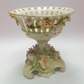 Continental porcelain flower encrusted basket on stand/Centerpiece, H:24.5cm x Diameter :25cm