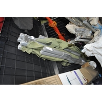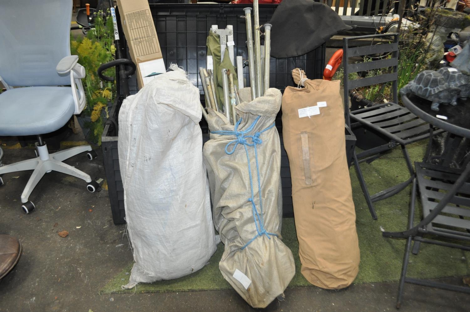 A VINTAGE CANVAS CARAVAN AWNING COMPLETE WITH POLES
