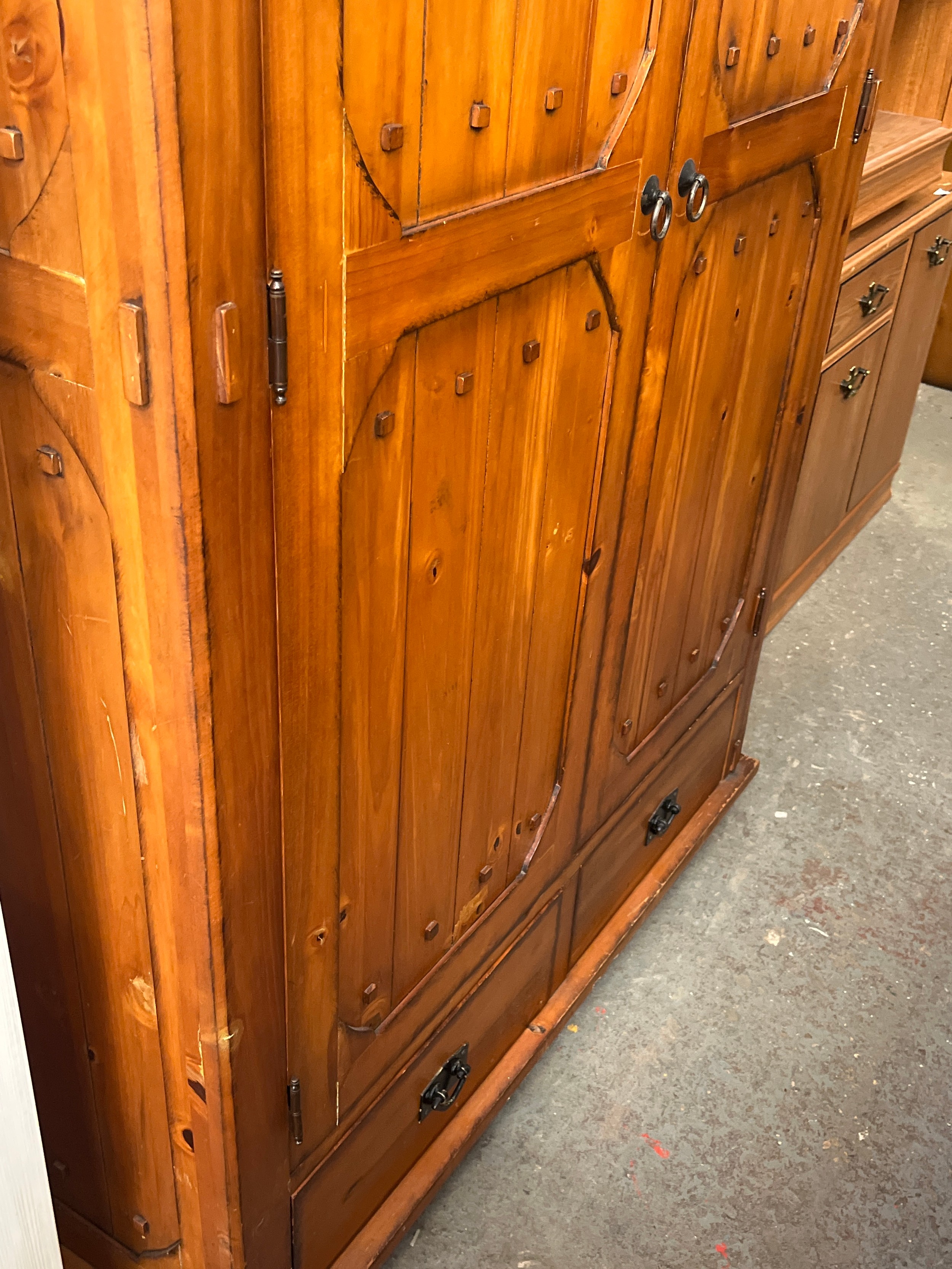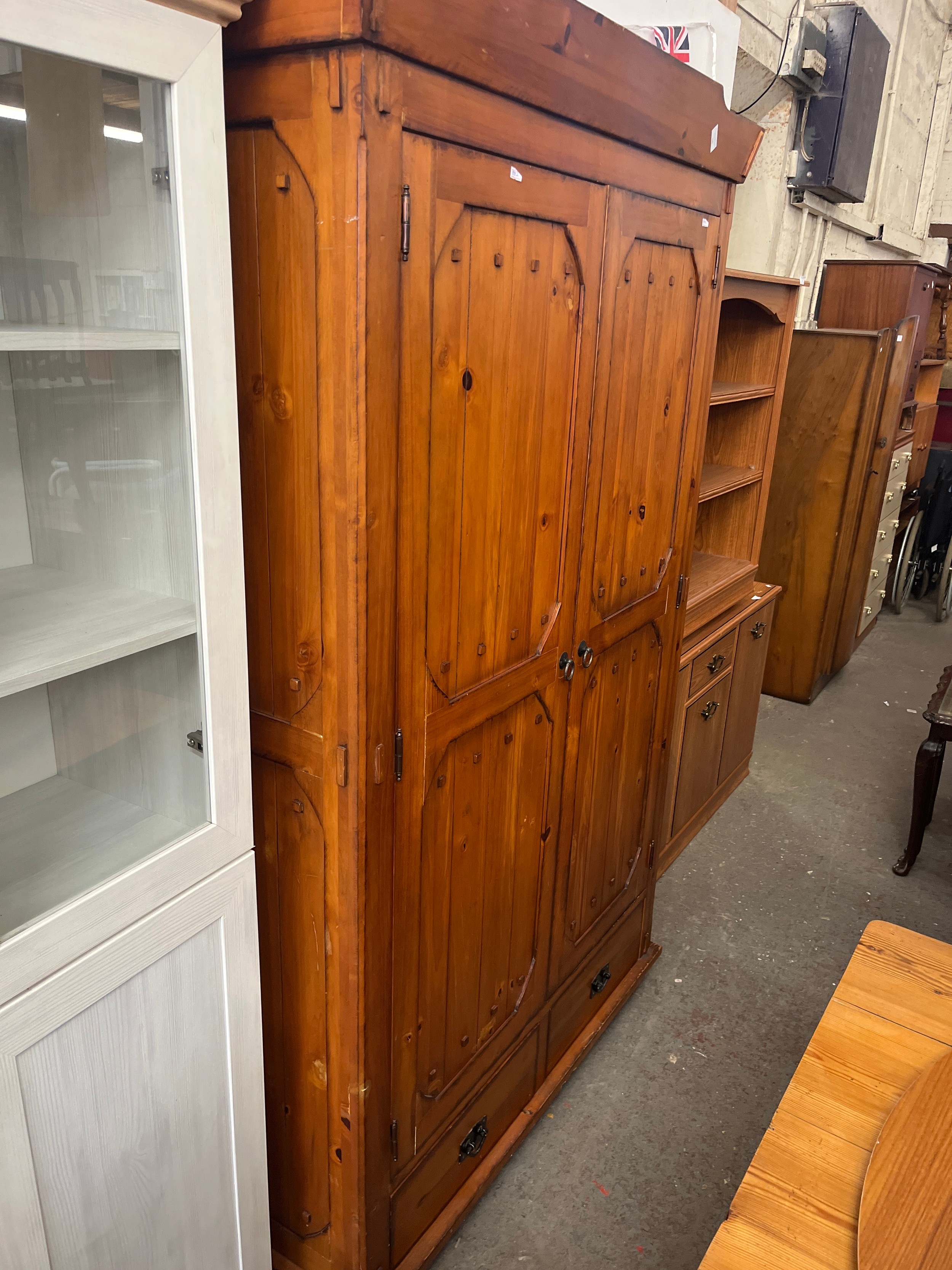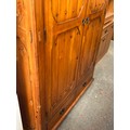 LARGE HEAVY PINE DOUBLE WARDROBE WTH 2 DRAWERS BELOW